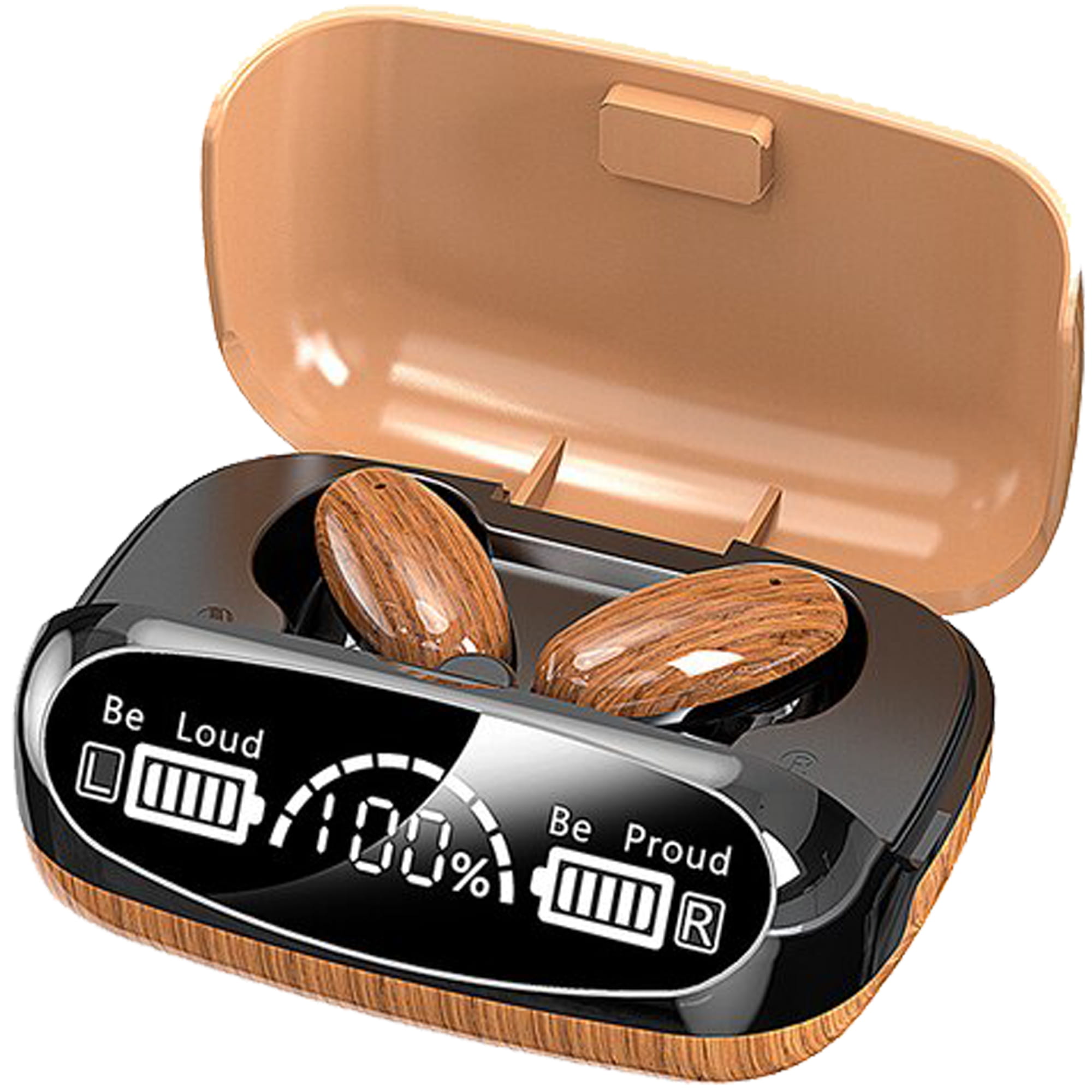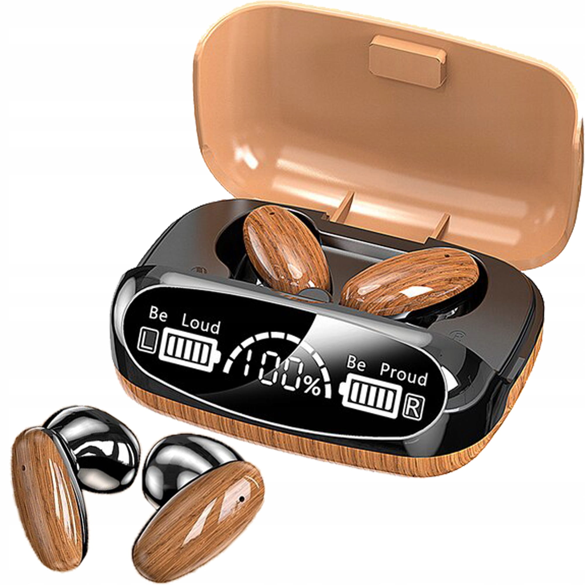 Niniejszy model został wyposażony w 3 niezależne wskaźniki poziomu naładowania. Wyświetlacz wskazuje poziom naładowania każdej ze słuchawek oraz poziom naładowania etui. Dzięki nim, już nigdy nie zaskoczy cię rozładowany telefon czy słuchawki!