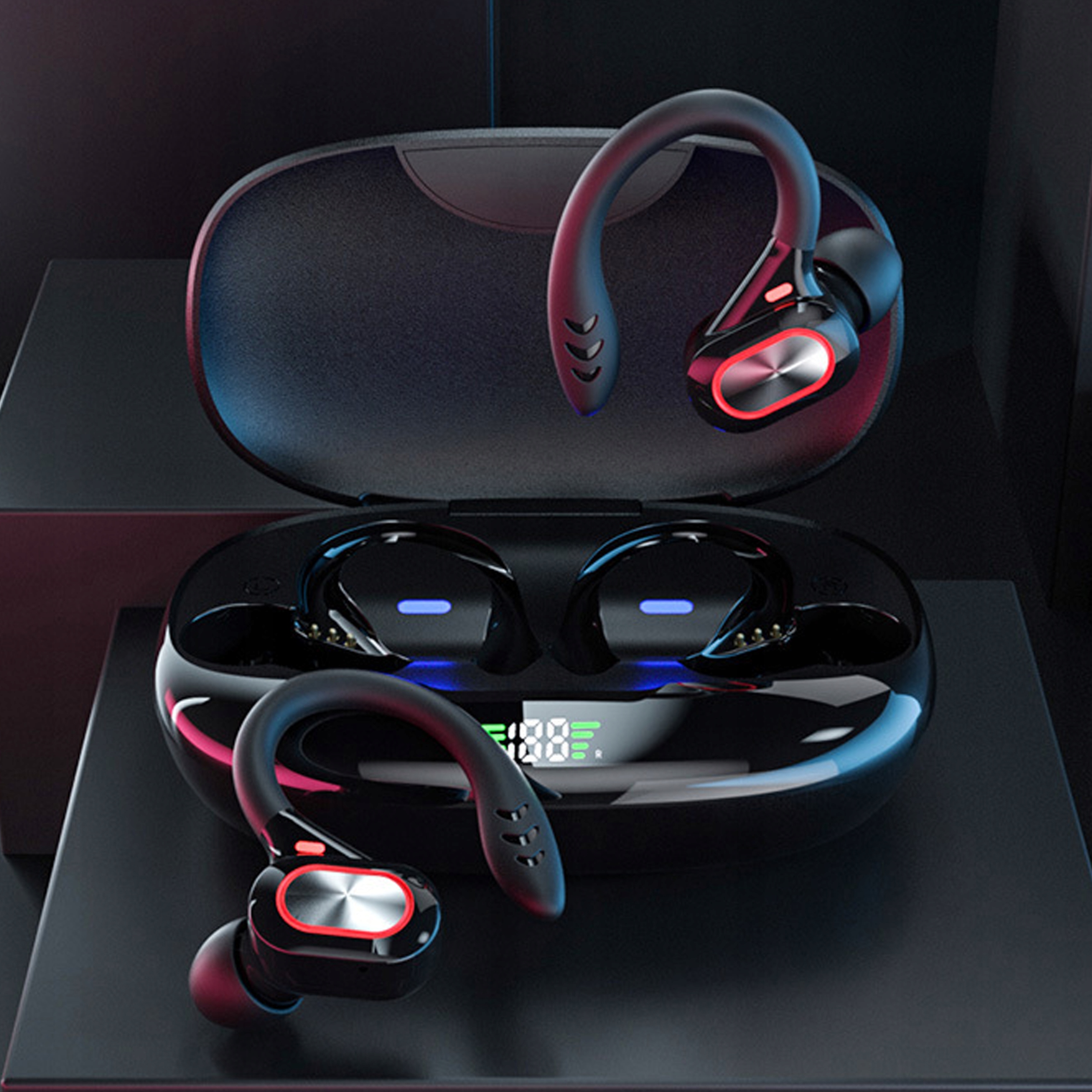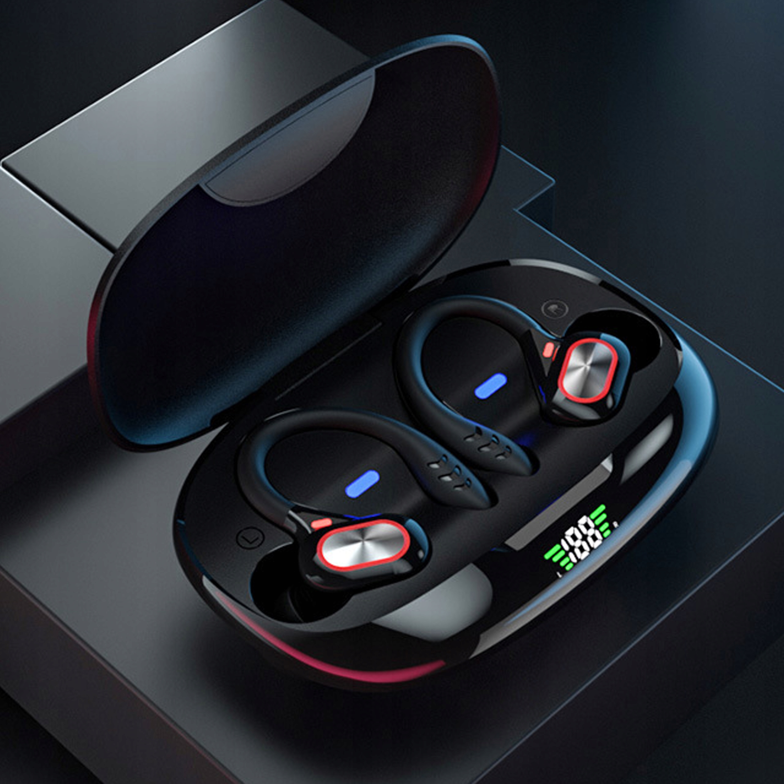 Niniejszy model został wyposażony w 3 niezależne wskaźniki poziomu naładowania. Wyświetlacz wskazuje poziom naładowania każdej ze słuchawek oraz poziom naładowania etui. Dzięki nim, już nigdy nie zaskoczy cię rozładowany telefon czy słuchawki!