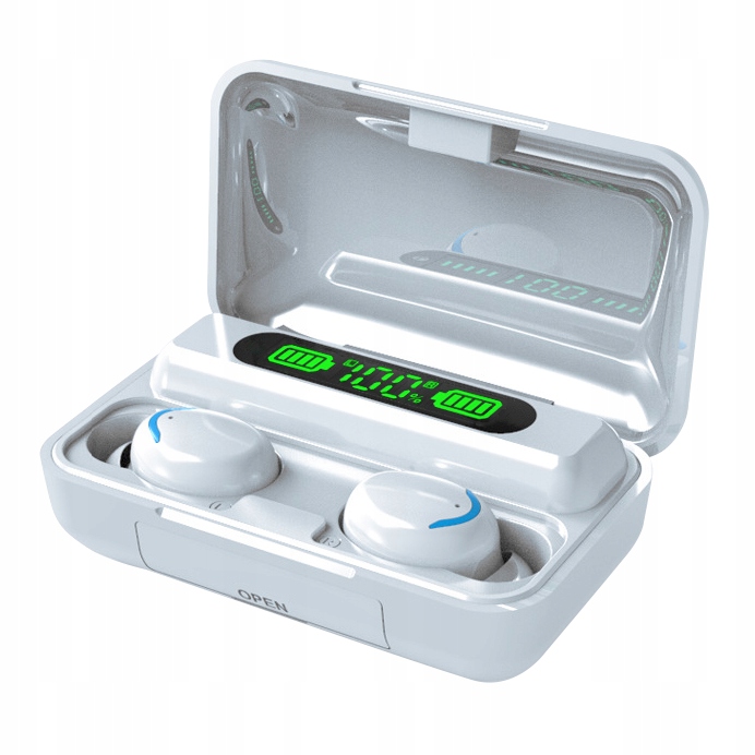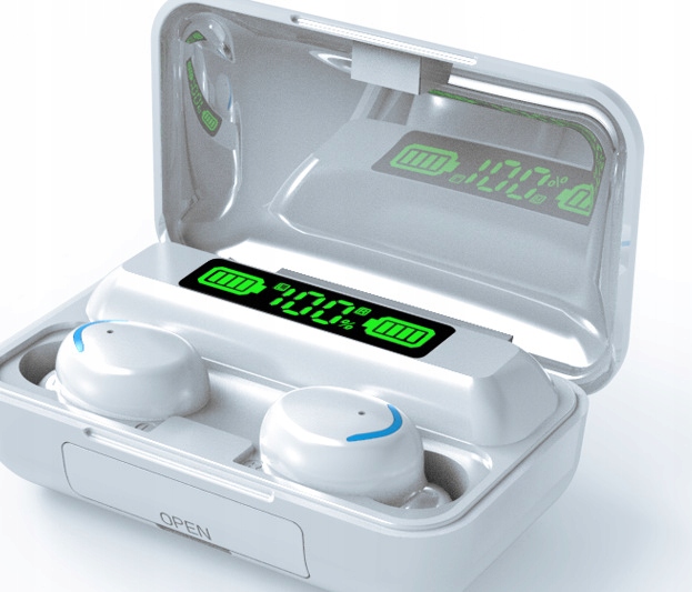 S10 posiadają powerbank z czytelnym wyświetlaczem, który informuje nas jaki jest stan naładowania powerbanku. Porty słuchawek posiadają magnesy, podobnie jak zamknięcie pokrywki etui, przez co cały zestaw pewnie się trzyma, a słuchawki nie wypadają.