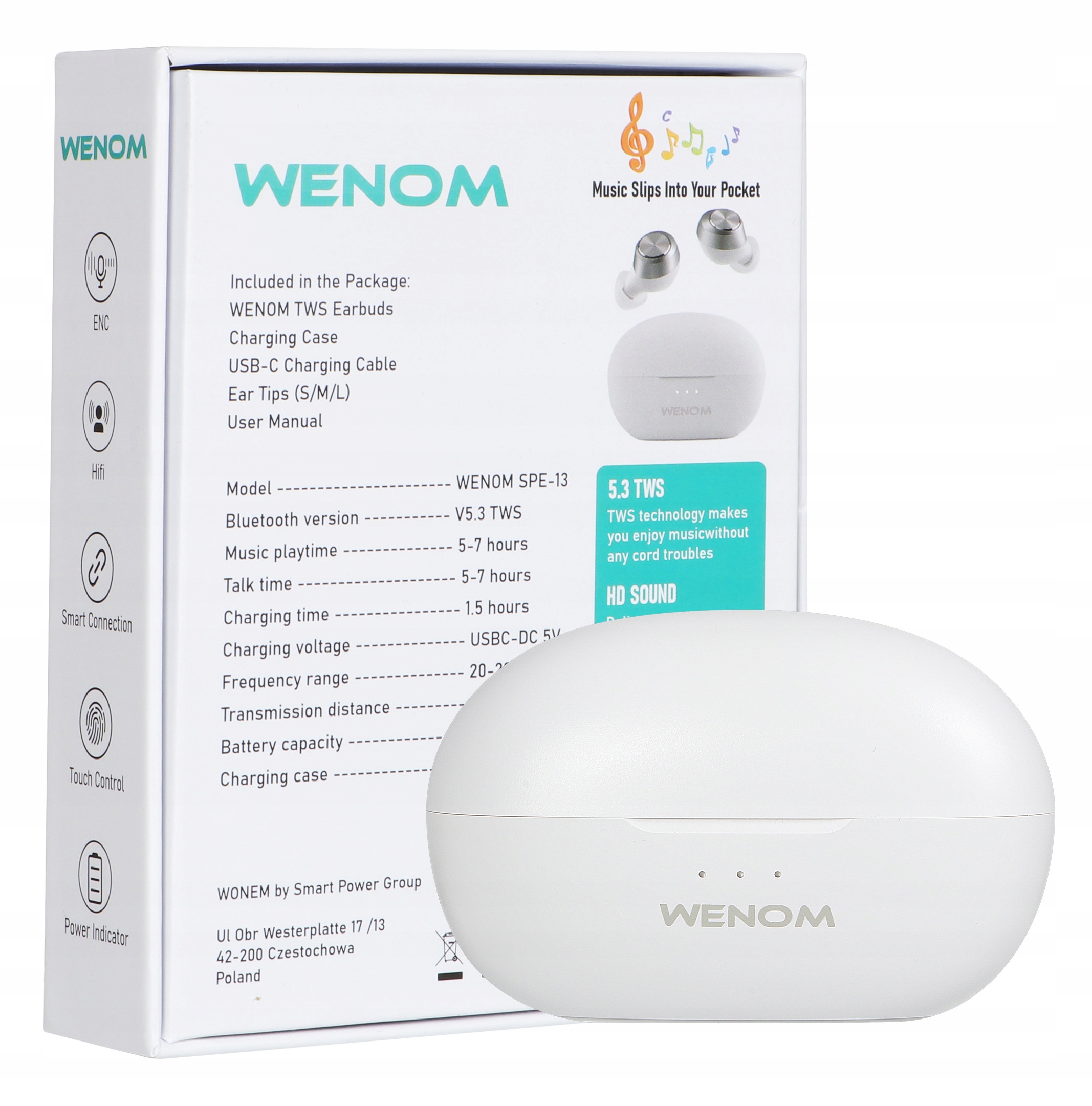 ➡️ Energooszczędność: Dzięki niskiemu poborowi mocy (5V), słuchawki Wenom SPE-13 są przyjazne dla baterii, co pozwala na długotrwałe i ekonomiczne korzystanie.