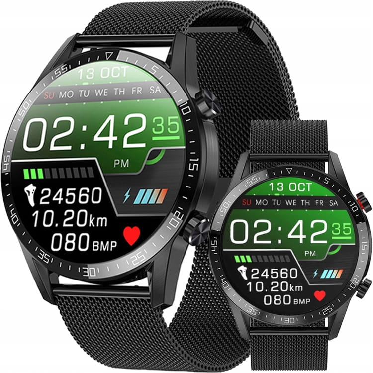 Najnowsza wersja doskonałego, wielofunkcyjnego smartwatcha stworzonego z myślą o mężczyznach. L13 to połączenie elegancji i funkcjonalności, która sprawdzi się zarówno na co dzień jak i podczas specjalnych okazji. L13 ułatwi Ci codzienne czynności, pomoże zoptymalizować trening i sprawi, że lepiej zadbasz o swoje zdrowie i zorganizujesz czas w ciągu dnia. Wszystko zamknięte w stylowej metalowej czarnej i wodoodpornej budowie o klasyfikacji IP68, dzięki czemu urządzenie jest bezpieczne przed deszczem czy myciem rąk.