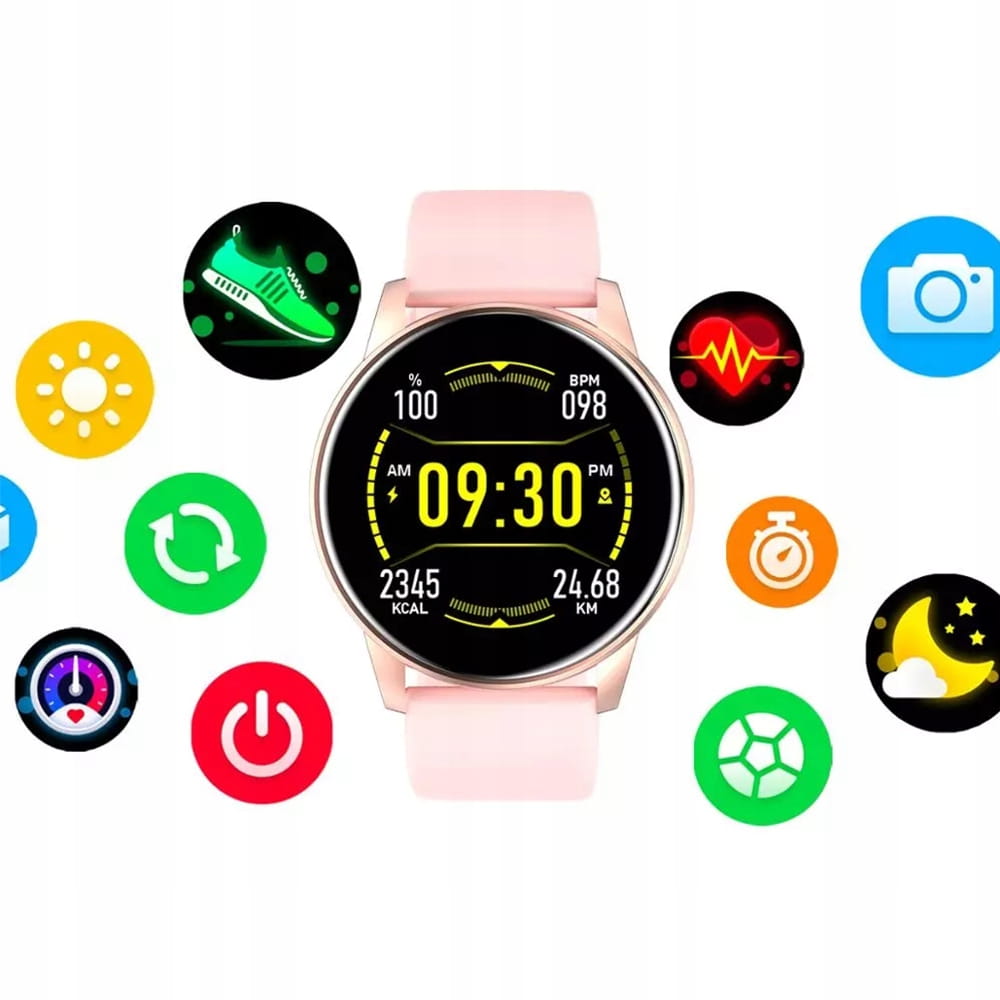 Najnowsza wersja doskonałego, wielofunkcyjnego sportowego smartwatcha stworzonego z myślą o kobietach. KW19 to połączenie elegancji i funkcjonalności, która sprawdzi się zarówno na co dzień jak i podczas specjalnych okazji. KW19 ułatwi Ci codzienne czynności, pomoże zoptymalizować trening i sprawi, że lepiej zadbasz o swoje zdrowie i zorganizujesz czas w ciągu dnia. Wszystko zamknięte w stylowej metalowej różowej i wodoodpornej budowie o klasyfikacji IP68, dzięki czemu urządzenie jest bezpieczne przed deszczem, myciem rąk czy intensywnym treningiem.