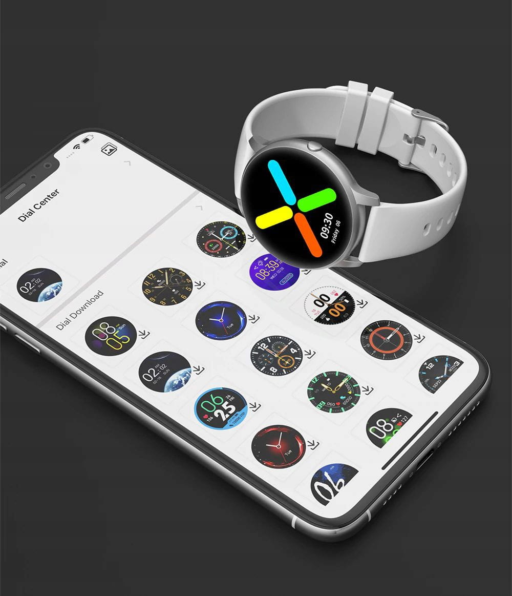 Z poziomu aplikacji zegarka możemy wybrać jedną z wielu różnorodnych tarcz, które mogą się wyświetlać na ekranie. Styl tarczy możemy dostosować względem swojego aktualnego nastroju, pory dnia lub danej okazji. Podczas spotkania biznesowego można wybrać bardziej oficjalny styl z analogowym zegarem, natomiast na popołudniowy rozruch fizyczny możemy zmienić tarczę na bardziej sportowo-elektroniczny styl. Wszystko zależy od Ciebie!