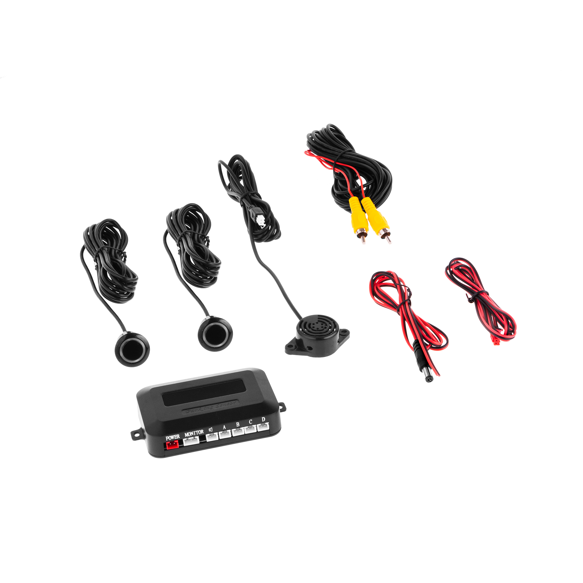 Kamera i czujniki charakteryzują się wysokim stopniem ochrony IP67, co zapewnia ich odporność na wodę i kurz. Urządzenie działa w szerokim zakresie temperatur od -20°C do 70°C, co gwarantuje niezawodność w różnych warunkach atmosferycznych. Stałe linie pomocnicze oraz alarm w zakresie od 0 do 2 metrów ułatwiają precyzyjne parkowanie. W zestawie znajdują się wszystkie niezbędne akcesoria: kamera w ramce tablicy rejestracyjnej, dwa czujniki, jednostka sterująca, kable AV, przewody zasilania, buzzer oraz instrukcja obsługi, co zapewnia prostą i szybka instalację.
