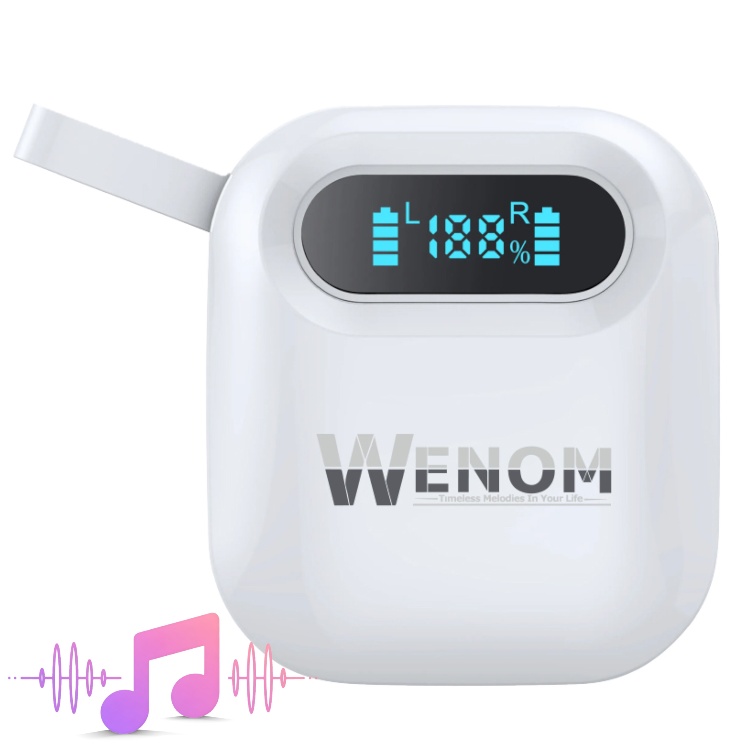 Słuchawki Wenom SPE-14 PRO oferują długi czas pracy, a dzięki dołączonemu kompaktowemu etui ładującemu z wbudowanym powerbankiem o pojemności 400mAh, możesz wielokrotnie naładować słuchawki. Inteligentny wyświetlacz LED umieszczony na powerbanku w czasie rzeczywistym informuje Cię o aktualnym poziomie naładowania etui oraz o statusie ładowania każdej ze słuchawek. Dzięki temu zawsze wiesz, kiedy podłączyć powerbank do ładowania i masz pewność, że Twoje słuchawki są gotowe do użycia.