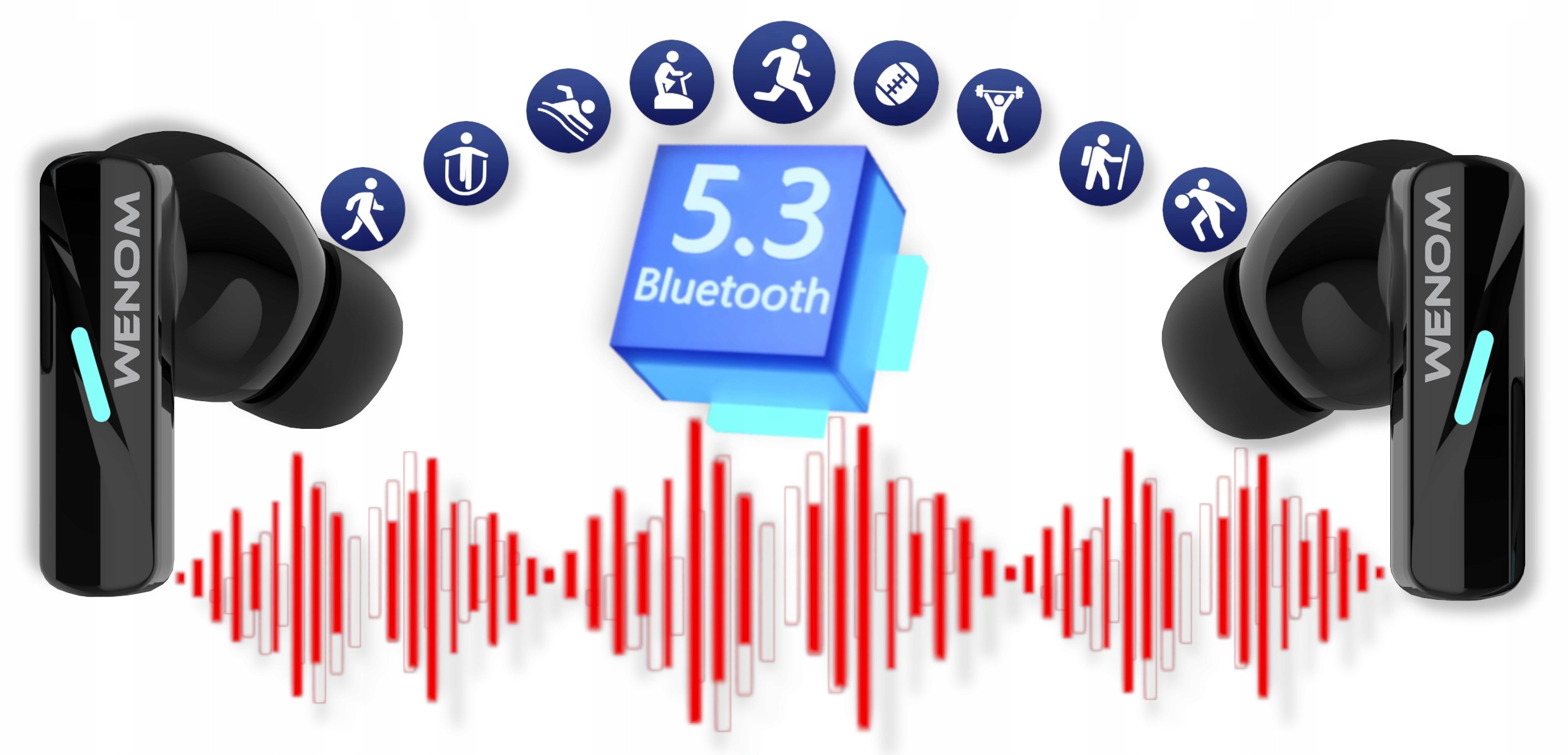 Najnowsza wersja Bluetooth 5.3 zapewnia stabilne i szybkie połączenie z minimalnym opóźnieniem. Możesz bezproblemowo połączyć swoje słuchawki z dowolnym urządzeniem obsługującym Bluetooth, w tym smartfonami z systemami Android, iOS czy Windows.