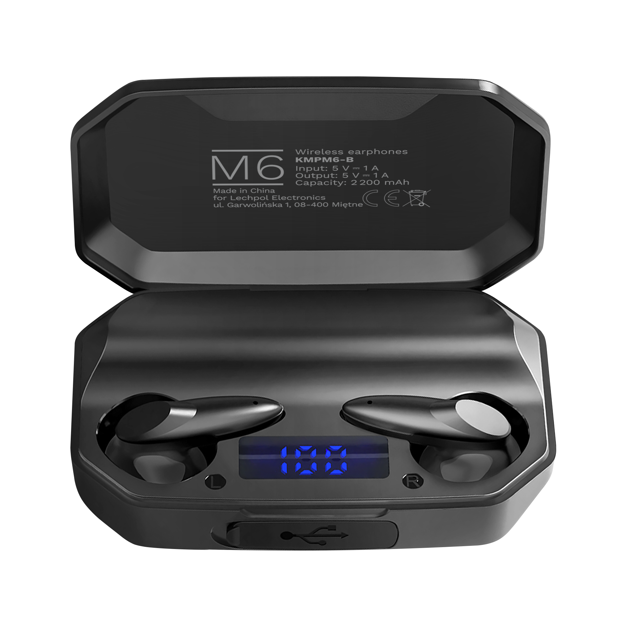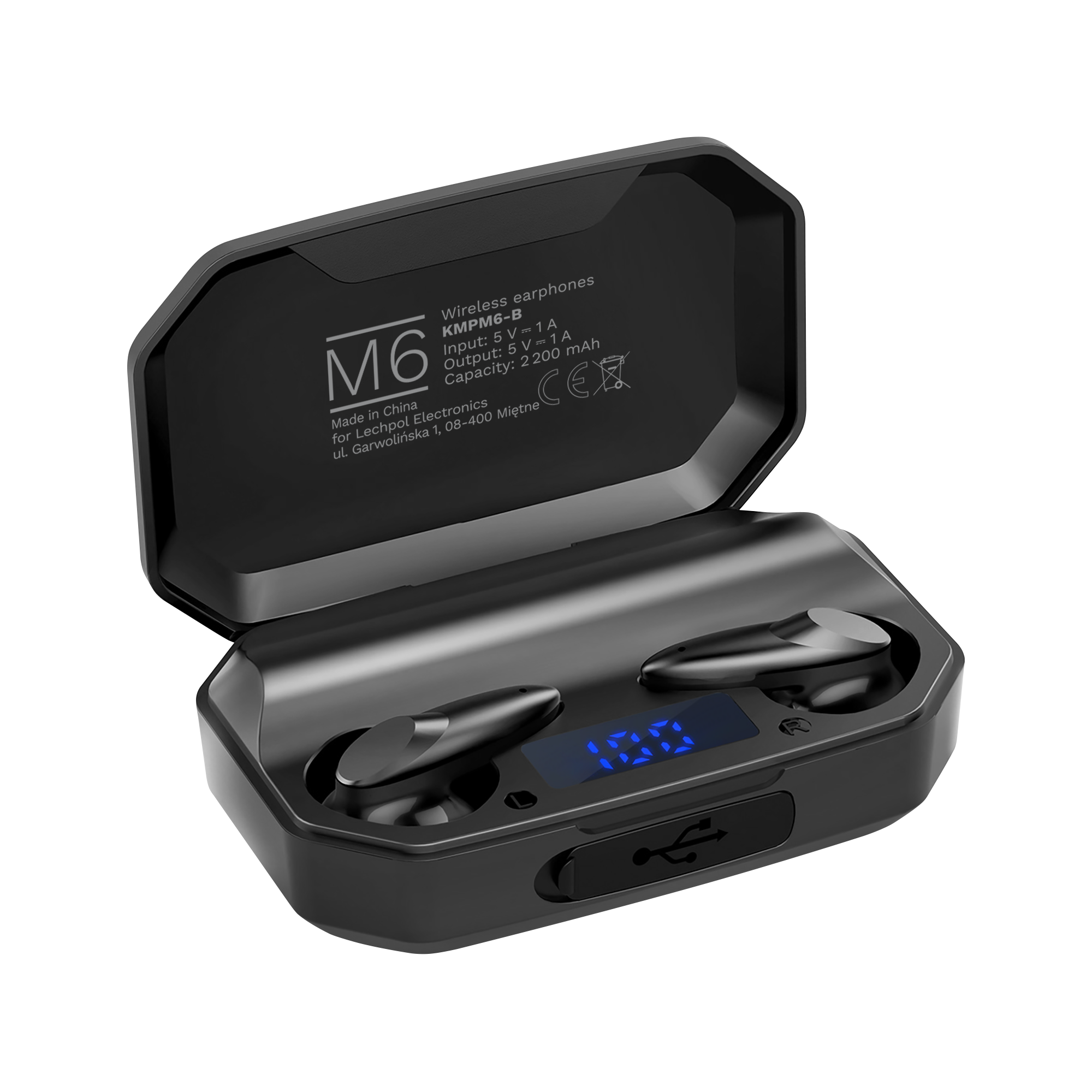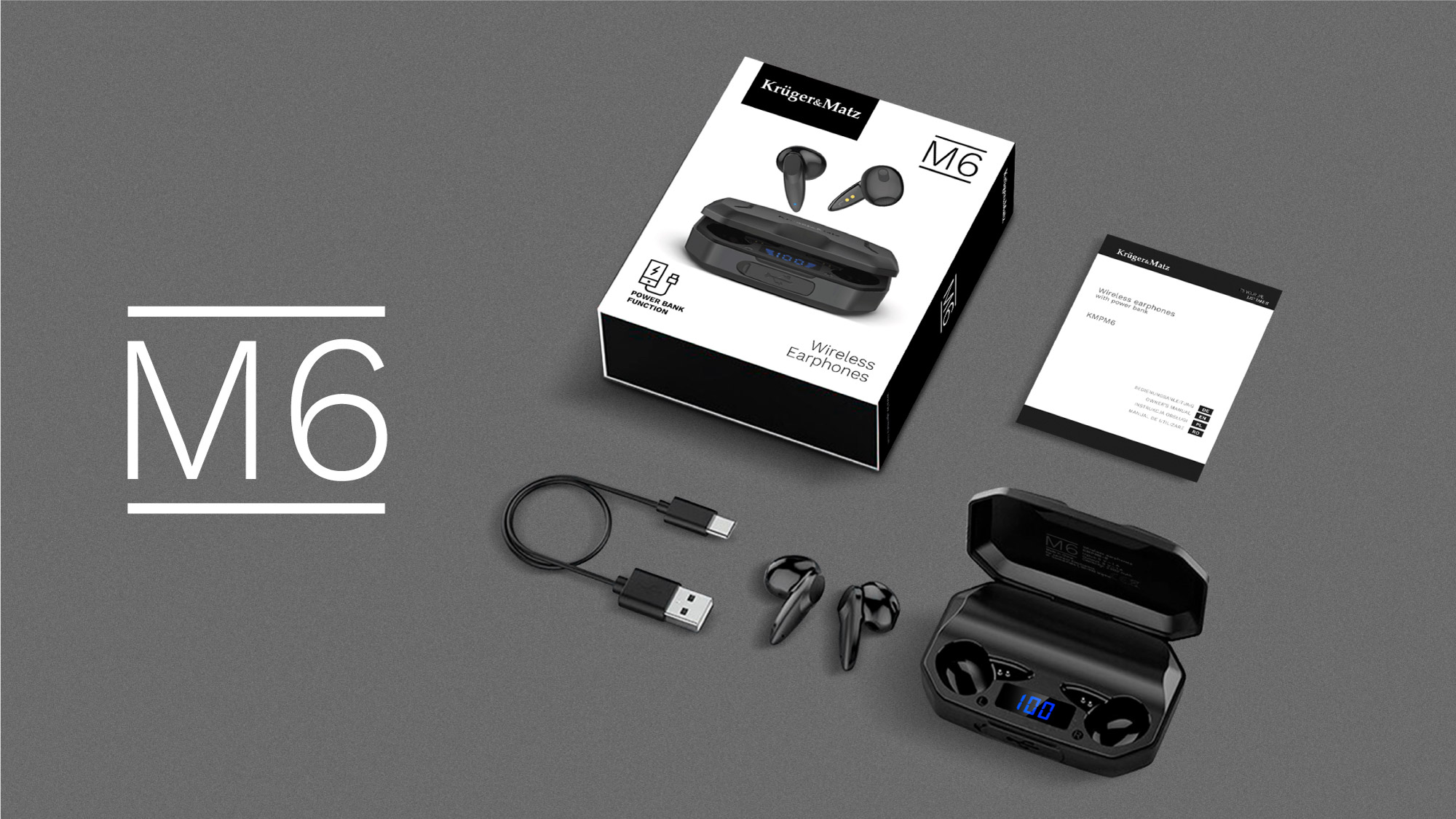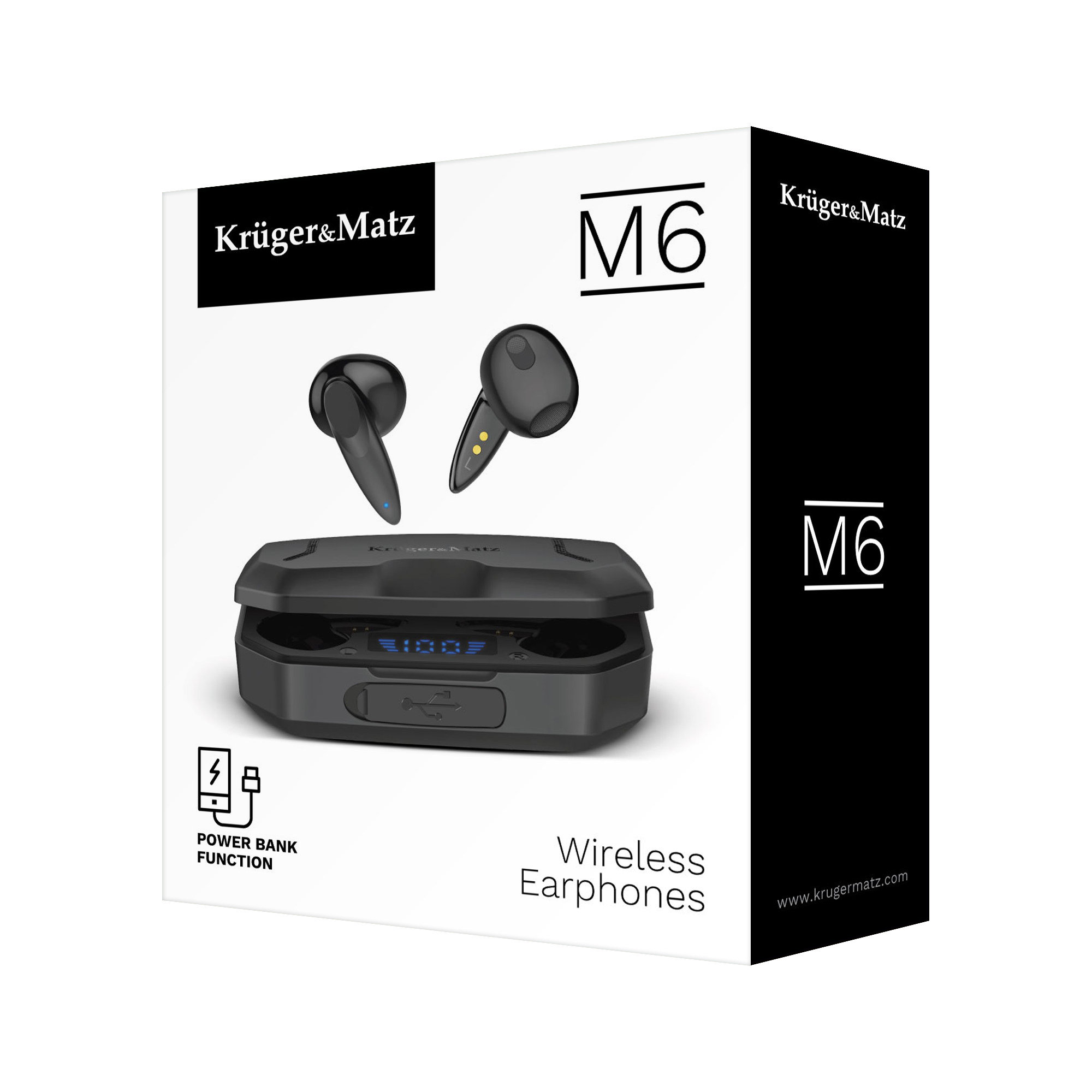 | Nazwa marketingowa | Bezprzewodowe słuchawki douszne z power bankiem Kruger&Matz M6 - kolor czarny |