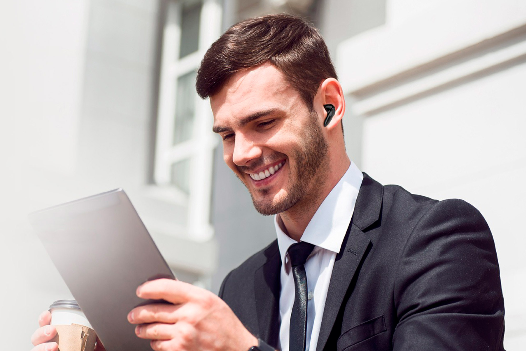 Brak przewodu, nie zmniejsza funkcjonalności słuchawek bezprzewodowych M6. Masz nad nimi kontrolę dzięki umieszczonemu na każdej słuchawce panelowi dotykowemu. Za pomocą kilku dotknięć możesz obsługiwać połączenia, zarządzać muzyką oraz uruchomić asystenta głosowego.