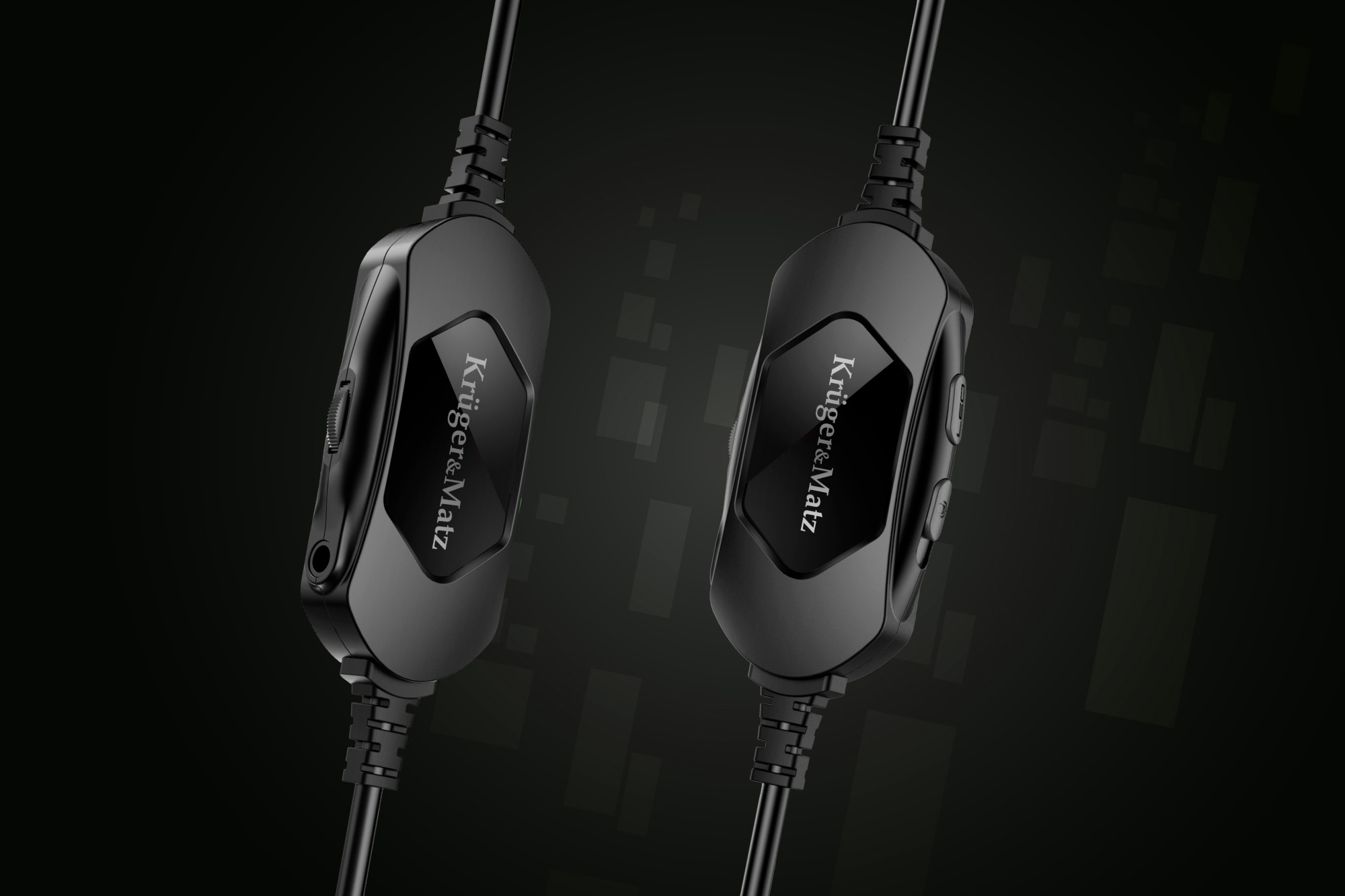 Słuchawki do grania Kruger&Matz Warrior GH-100 zostały wyposażone w panel sterowania, który nie tylko umożliwia zarządzanie funkcjami słuchawek, ale posiada także wejście AUX. Dzięki temu możesz je podłączyć do pada bądź urządzeń mobilnych.
