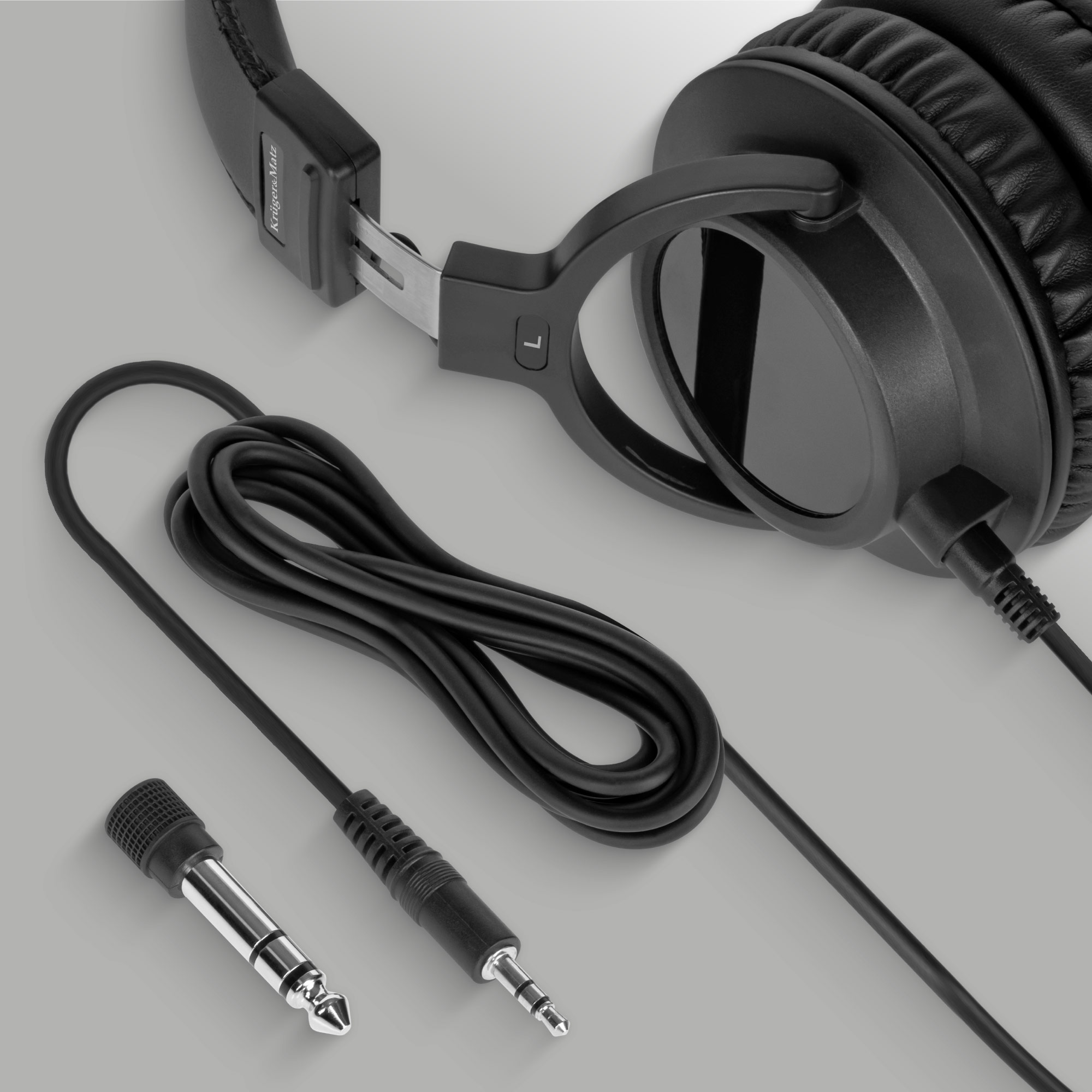 Niezależnie od tego, jakie źródło dźwięku preferujesz, słuchawki Kruger&Matz DJ są gotowe do działania. Wyposażone zostały zarówno złącze jack 3,5 mm, idealne do podłączenia do smartfona, tableta czy laptopa, jak też złącze jack 6,3 mm, które sprawia, że są kompatybilne z profesjonalnymi urządzeniami audio.