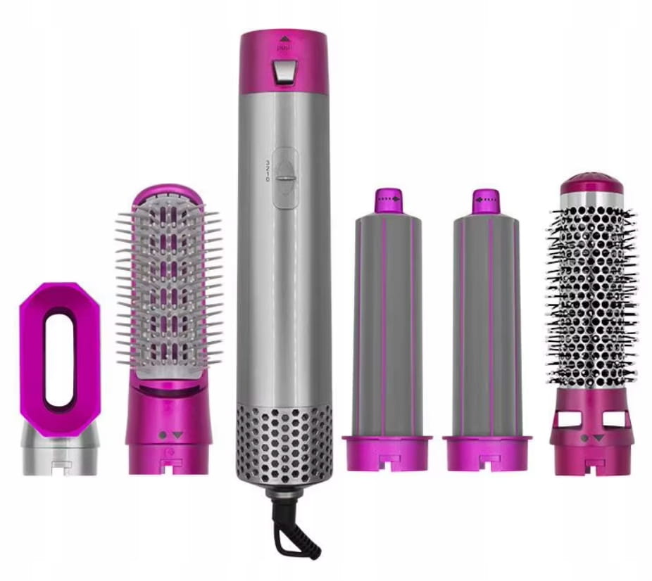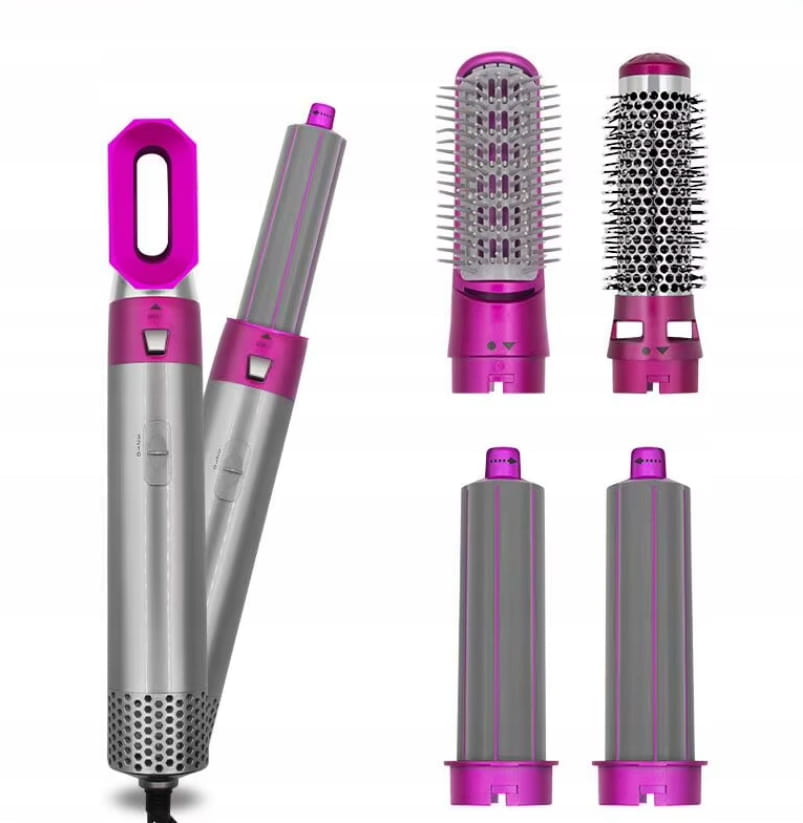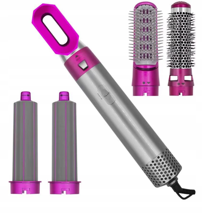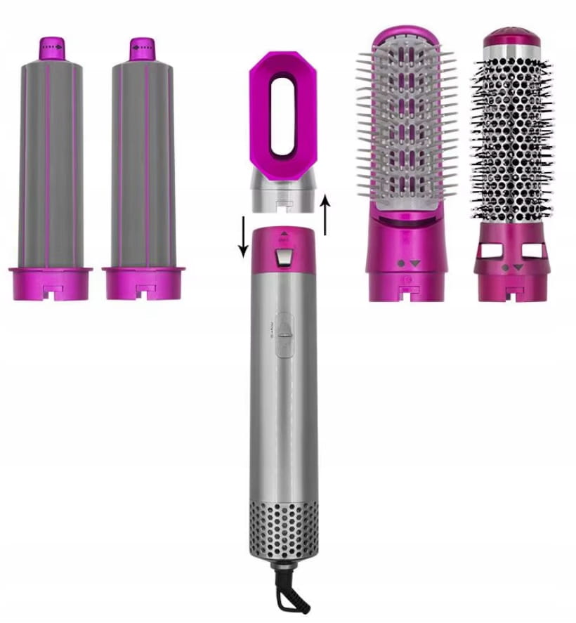Wielofunkcyjna - nasz produkt został wyposażony w 5 wymiennych głowic dzięki czemu w jedno urządzenie pozwoli na zrobienie loków, fal, wyprostowanie lub zwykłe wysuszenie włosów.