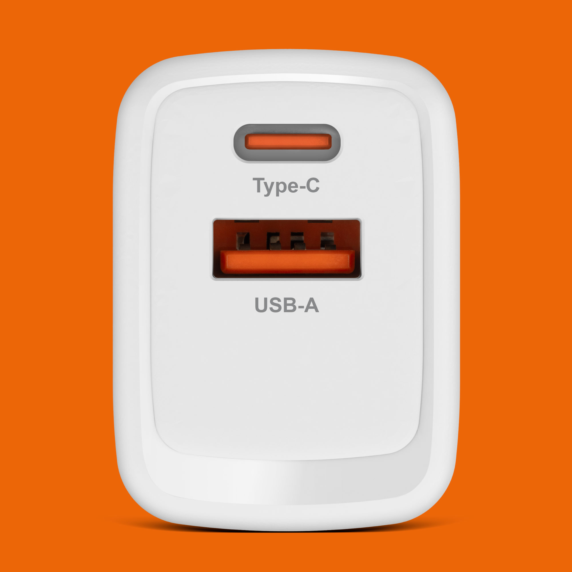 Kompaktowa obudowa ładowarki sieciowej KM0856 wyposażona została w dwa porty: USB typu A oraz USB typu C. Dzięki temu posiadając w domu odpowiednie typy kabli, tym jednym urządzeniem możesz zastąpić wiele innych zasilaczy.
