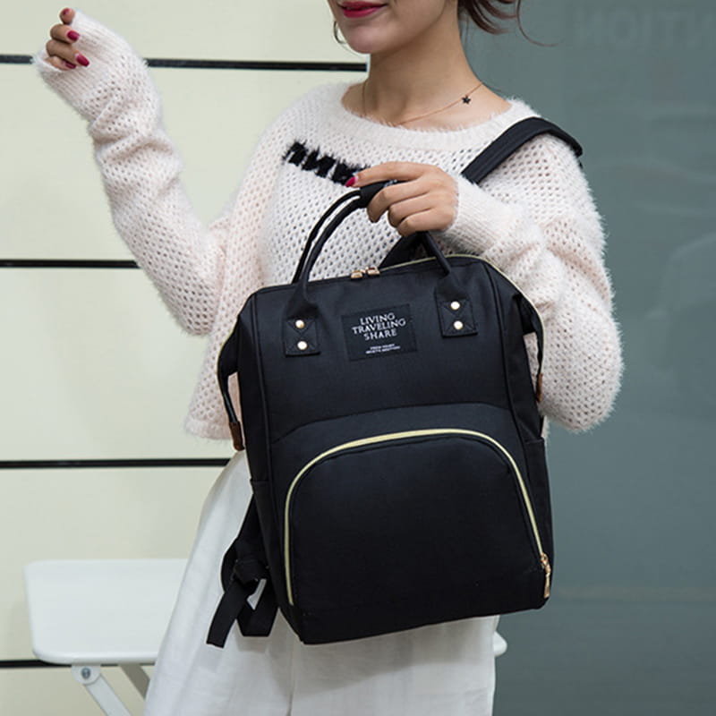Plecak jest wykonany ze specjalnego materiału 600D OXFORD, który jest bardzo odporny na przetarcia. Całość jest nieprzemakalna dlatego sprawdzi się również podczas gorszej pogody. Zapięcia wykonane zostały z solidnych pozłacanych suwaków, co dodaje plecakowi atrakcyjności. Każda mama znajdzie w produkcie wiele pożytku podczas spaceru z dzieckiem, ale również starszy brat czy siostra może wziąć plecak na wycieczkę szkolną ze względu na swój ponadczasowy wygląd.