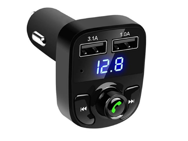 Transmiter FM X8 dwa wejścia USB o natężeniu 3.1A oraz 1A zapewniające bardzo szybkie ładowanie. Możesz jednocześnie ładować telefon i puszczać z niego muzykę!