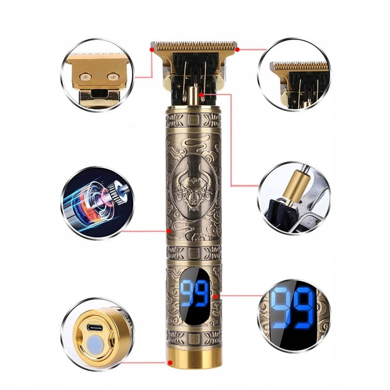 Trymer z akumulatorem i wyświetlaczem cyfrowym do włosów i brody