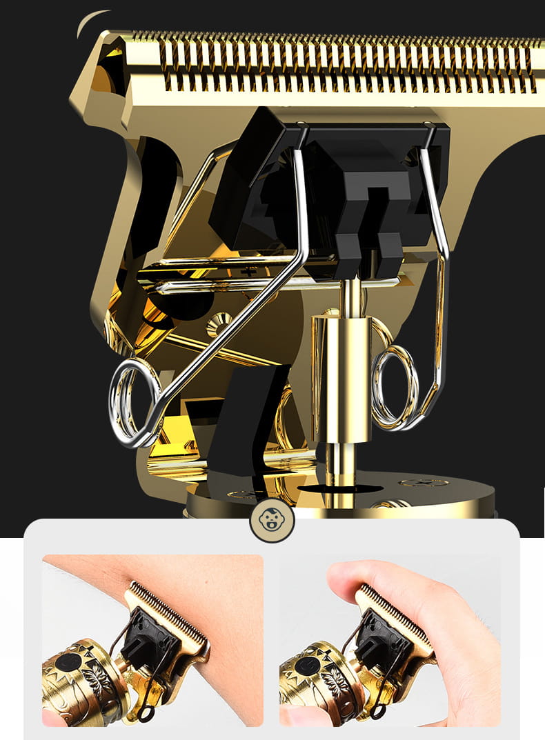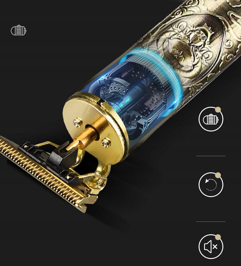 Elektryczny trymer barberski z kompletnym wyposażeniem niezbędnym do profesjonalnego strzyżenia oraz modelowania włosów i zarostu. Produkt może służyć jako golarka lub jako trymer, tytanowe ostrze zapewnia niespotykaną w innych urządzeniach precyzję, która oferuje jakość cięcia jak z salonu fryzjerskiego lub od barbera. Maszynka pozwala przycinać, kształtować i stylizować. Doskonale radzi sobie zarówno z twardym zarostem jak i miękkimi włosami, dlatego jest odpowiednia dla kobiet oraz mężczyzn.