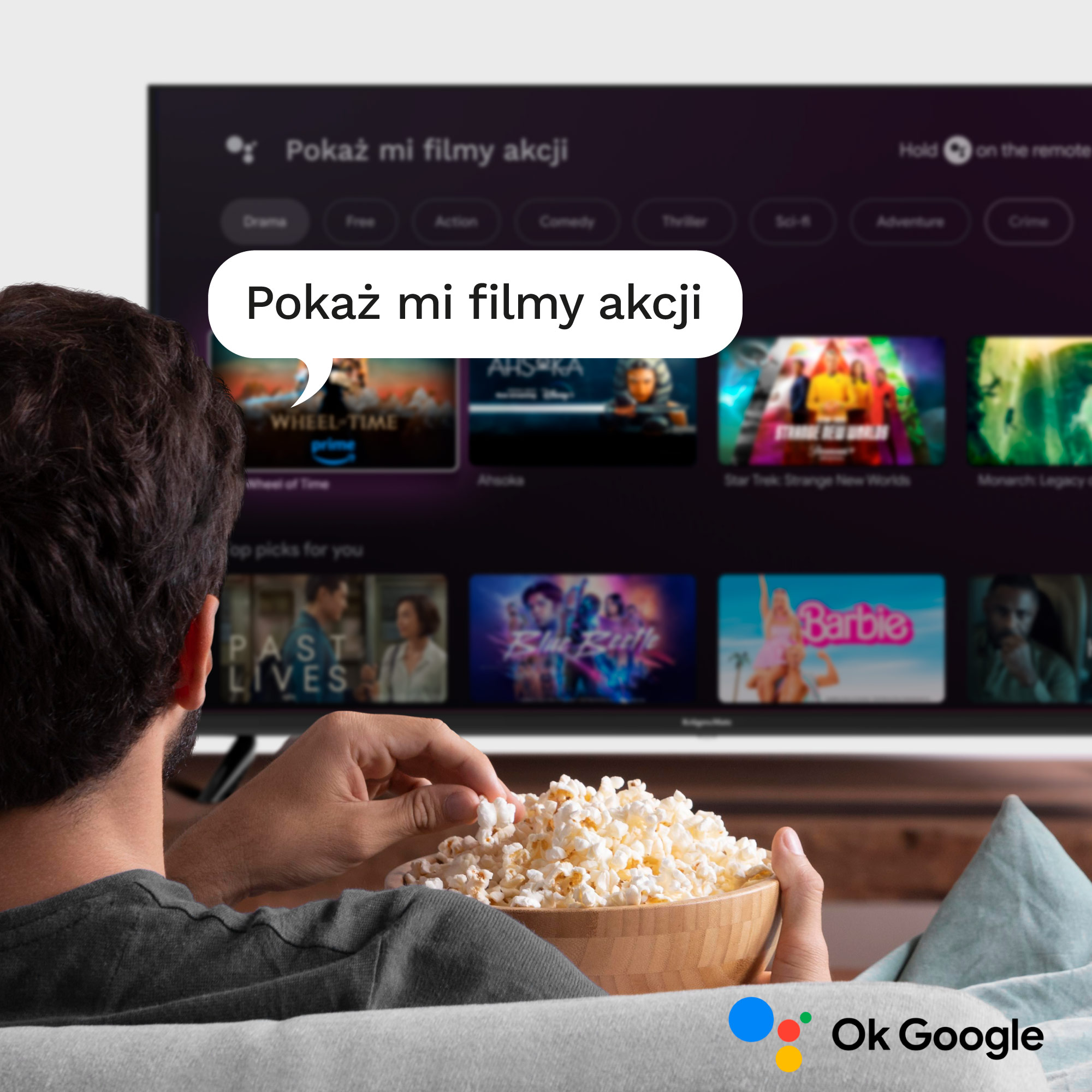 Dzięki Google TV w jednym miejscu masz dostęp do tysięcy różnego rodzaju programów telewizyjnych i filmów z Twoich serwisów streamingowych i aplikacji, w tym popularnych platform takich jak: Netflix, YouTube, Disney Plus czy Amazon Prime Video. Co ważne są one odpowiednio zorganizowane, zgodnie z Twoimi upodobaniami.