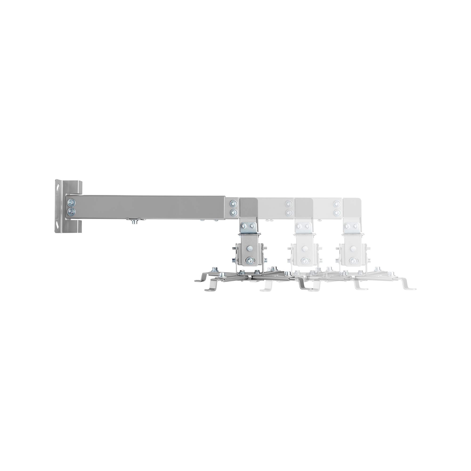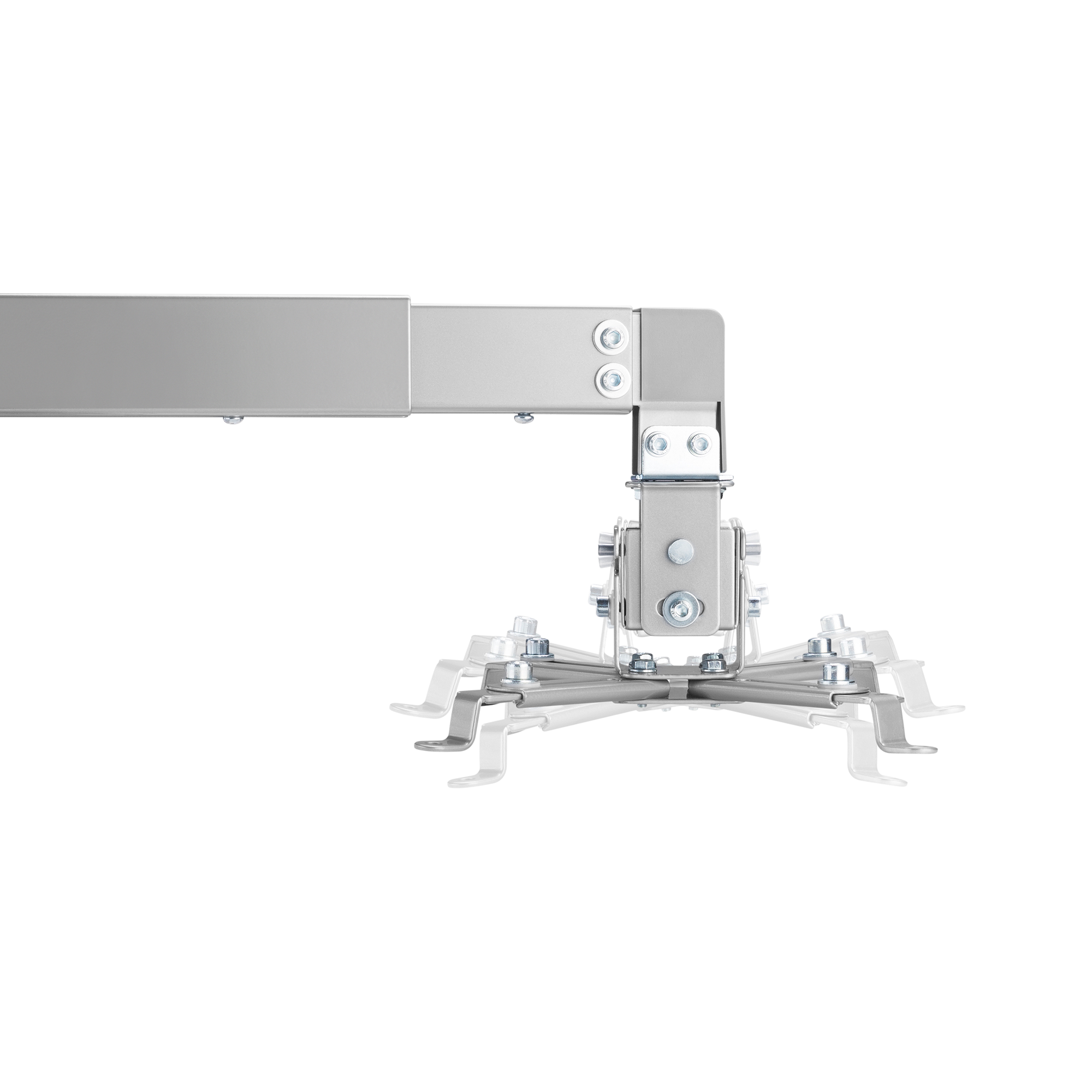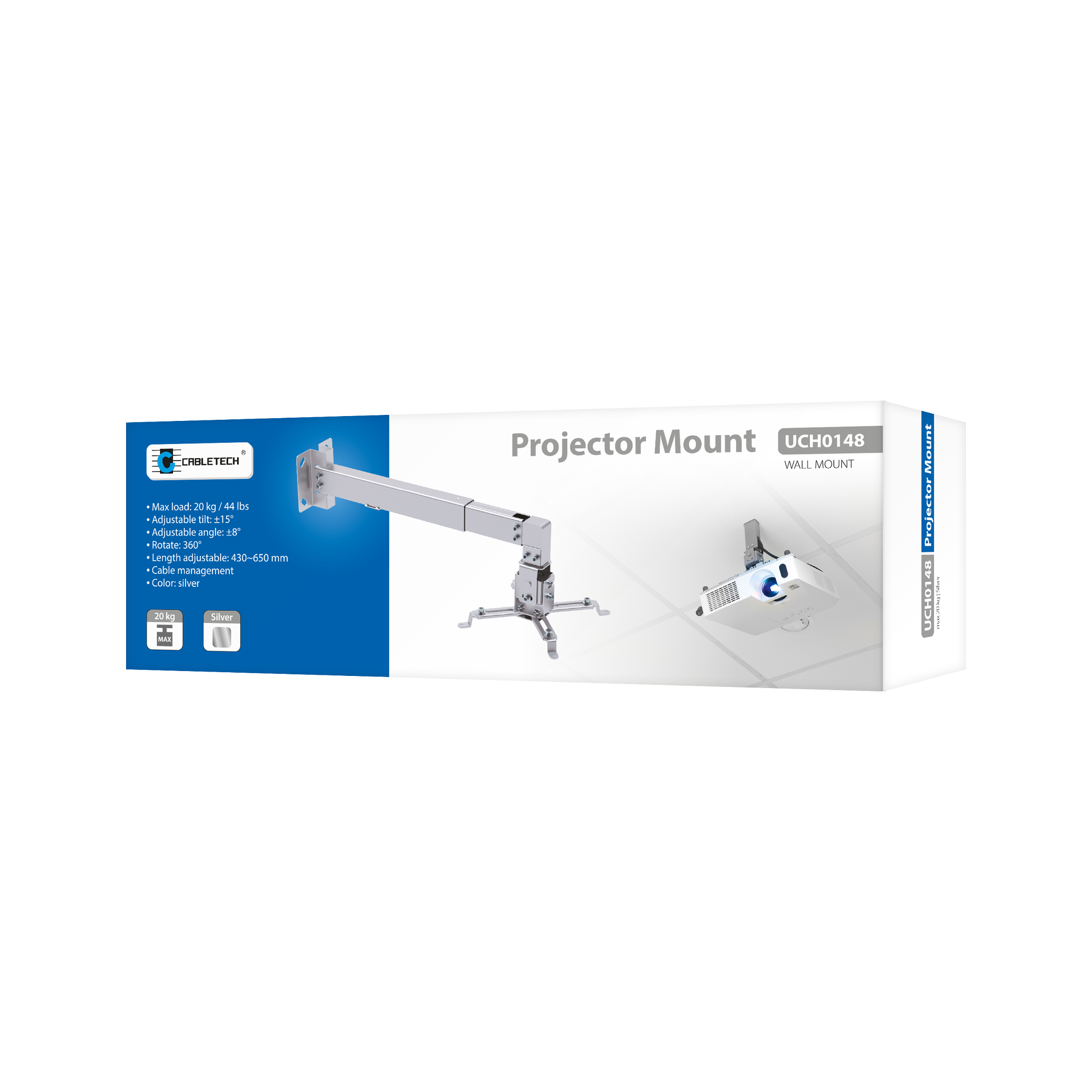 Wykonany z wytrzymałej stali z eleganckim, srebrnym wykończeniem, doskonale komponuje się z każdym wnętrzem. System zarządzania kablami utrzymuje porządek, zapewniając schludność i porządek wokół projektora, poprawiając estetykę całego pomieszczenia. Dołączone śruby montażowe sprawiają, że instalacja na ścianie lub suficie jest szybka i bezproblemowa.