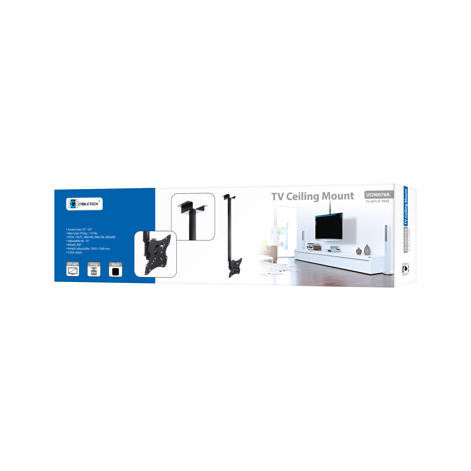 Uchwyt LCD sufitowy czarny do LCD 23" - 42" max 50 kg 360° Cabletech