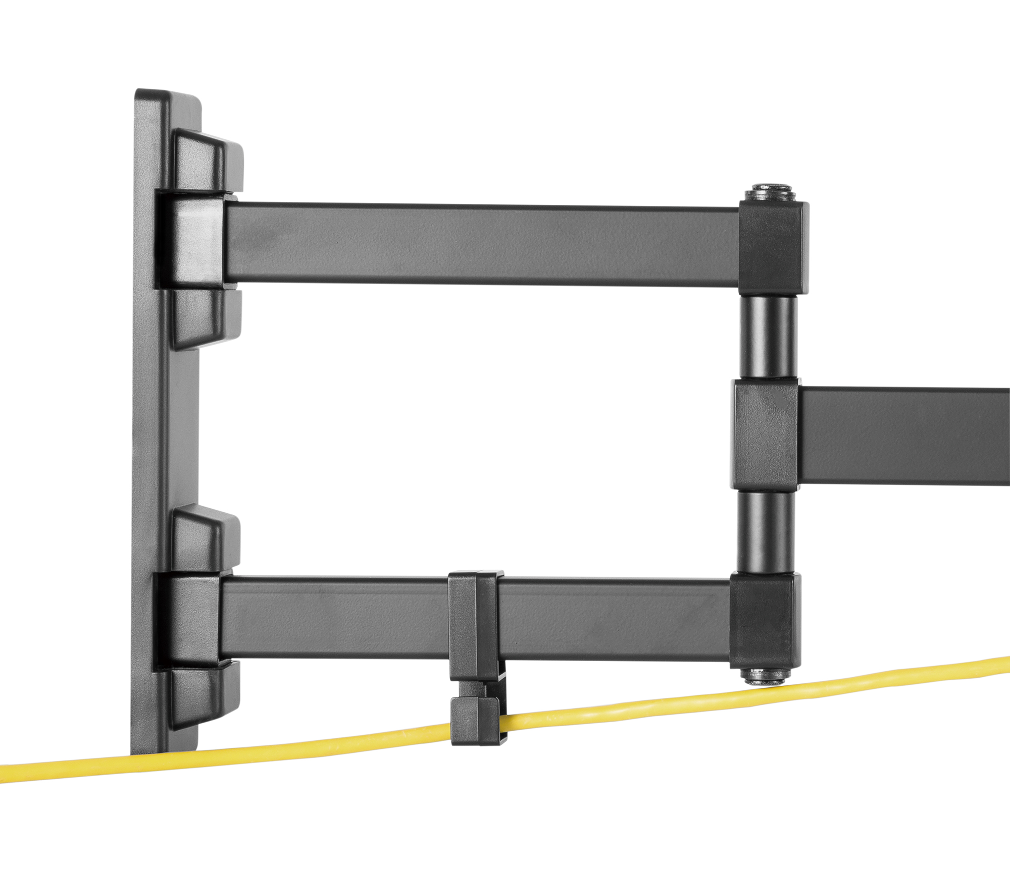 Uchwyt do telewizorów wielkości 13’’-32’’ może być regulowany pod kątem nawet +90°/-90° w poziomie i +5° /-12° w pionie. Co więcej masz możliwość zarządzania kablami, aby utrzymać je w porządku oraz uczynić swoje mieszkanie estetycznym i eleganckim.