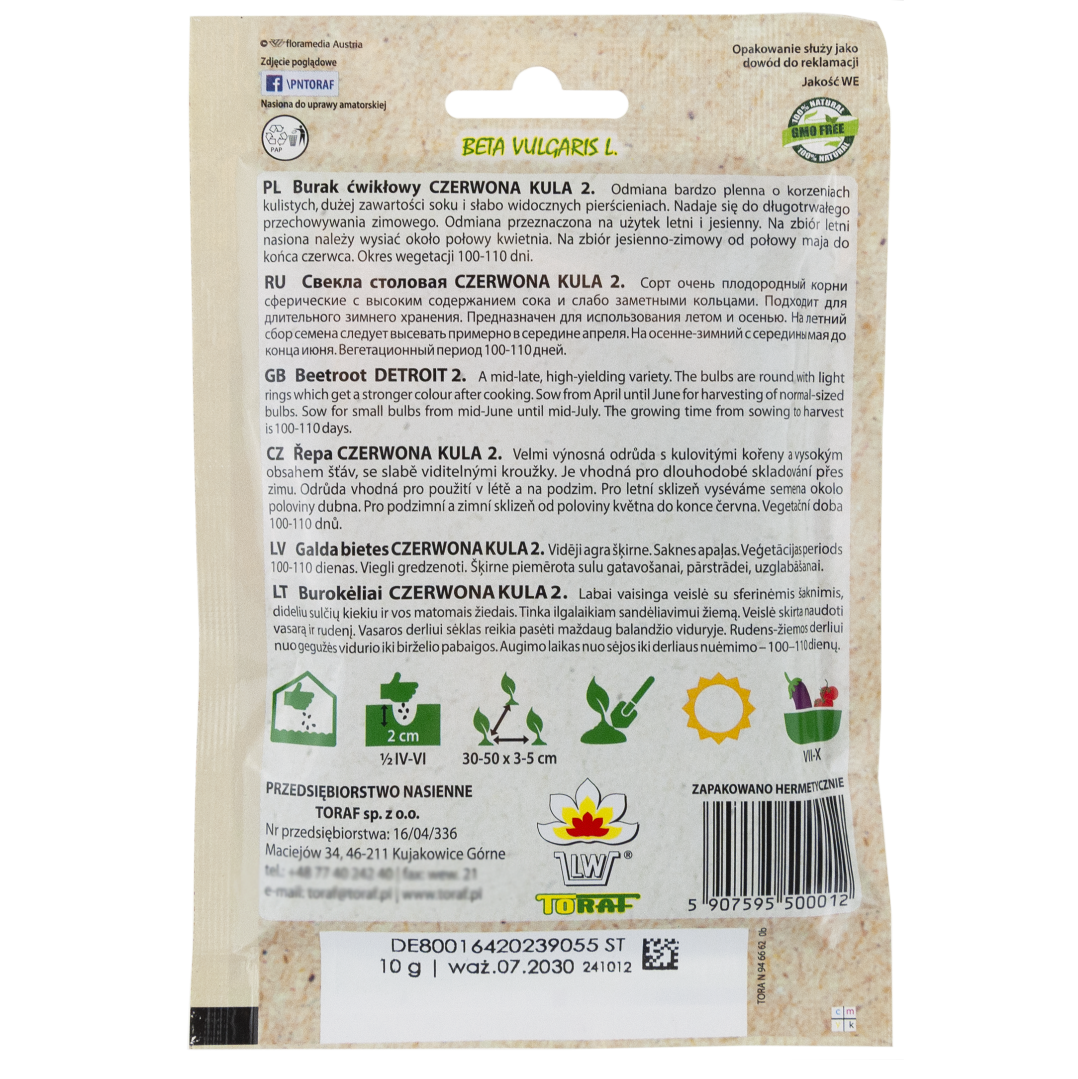 W0012 BURAK ĆWIKŁOWY CZERWONA KULA 2 10G NASIONA BURAKA CZERWONEGO