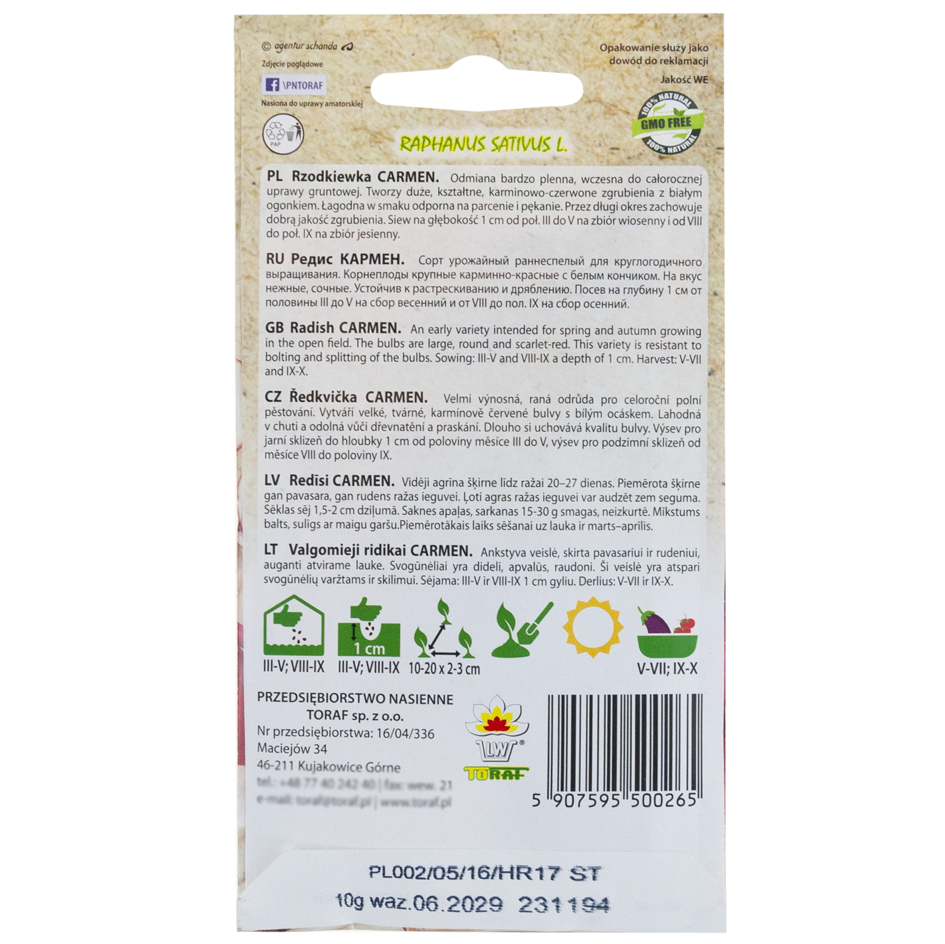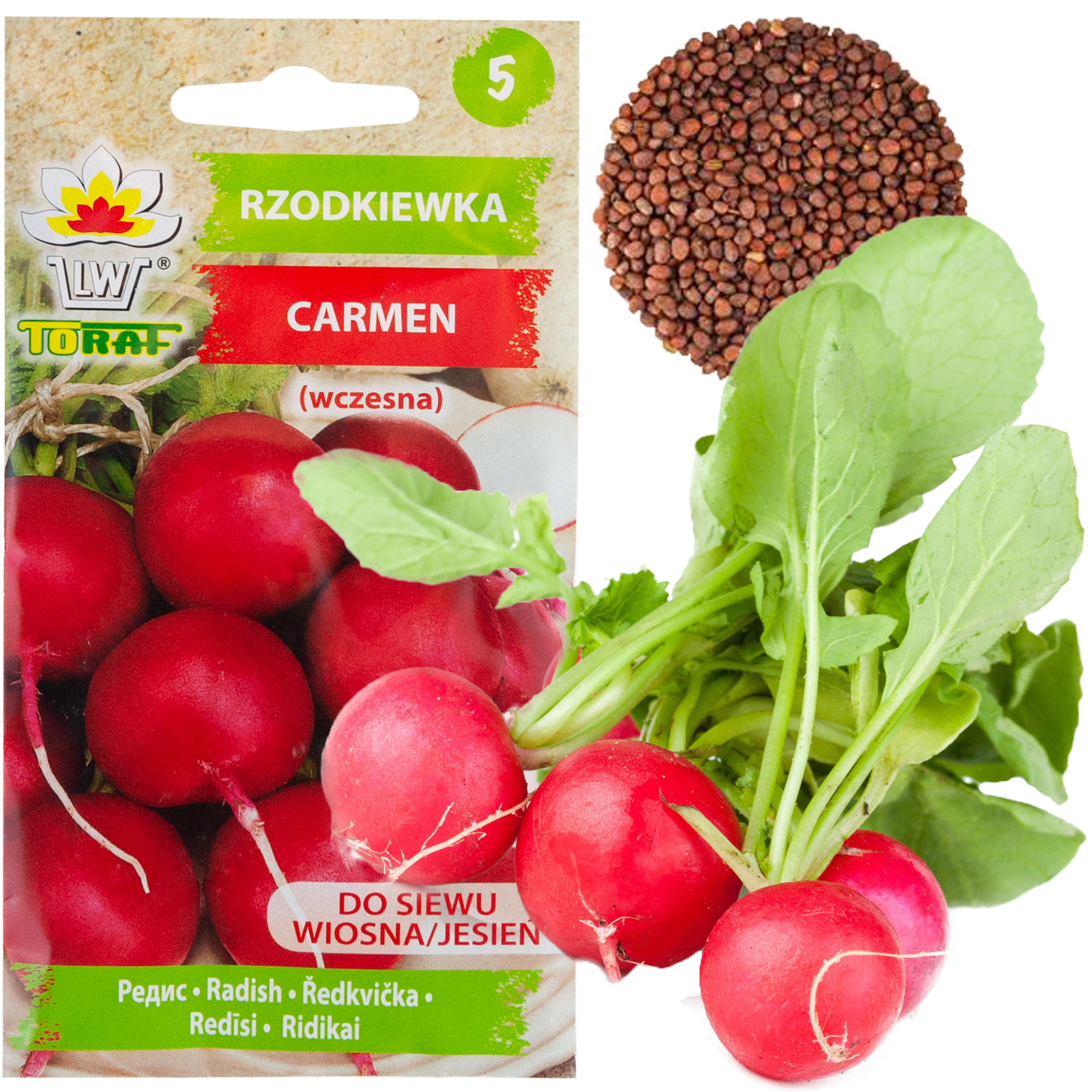 W1194 RZODKIEWKA NASIONA RZODKIEWKI CARMEN CZERWONA WCZESNA ŁAGODNA NIE PARCIEJE 10G