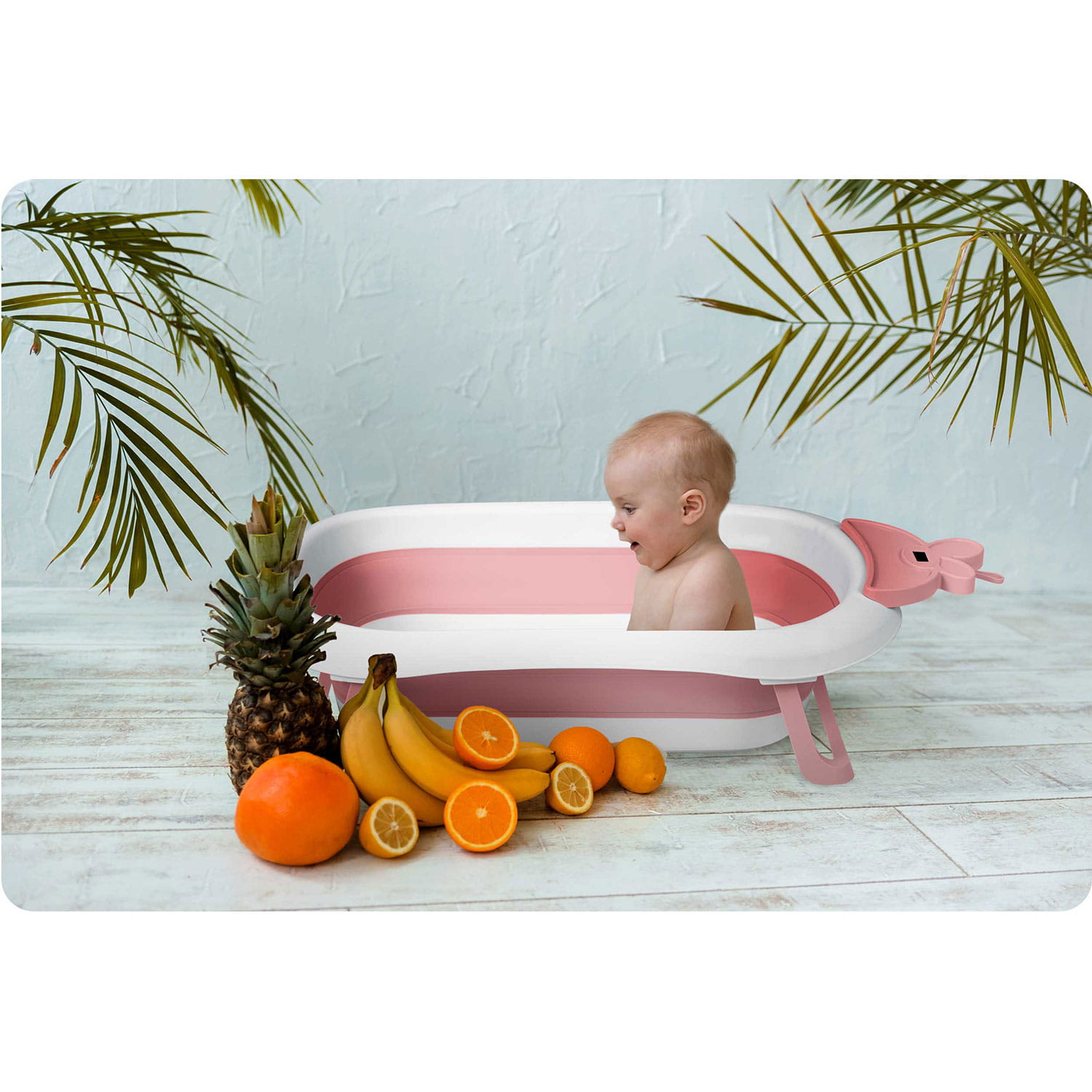 Wanienka dla niemowląt z termometrem RK-282 biało-różowa