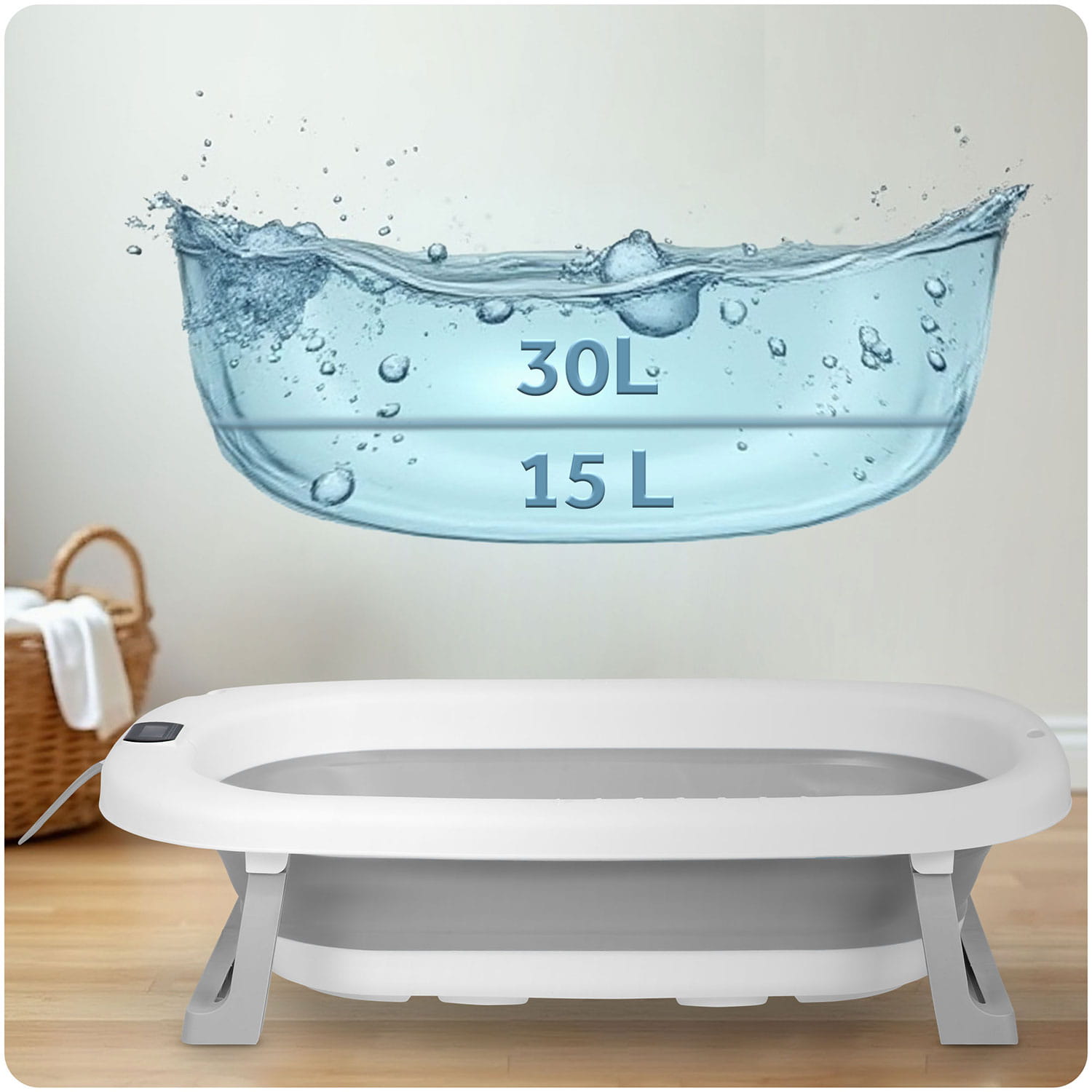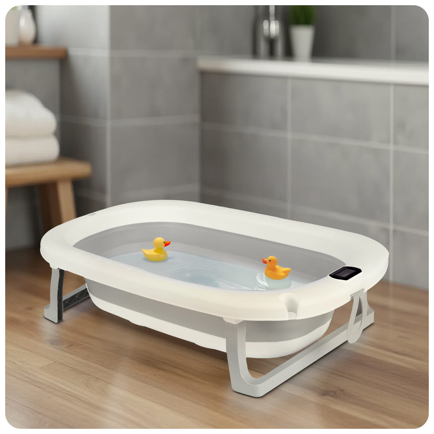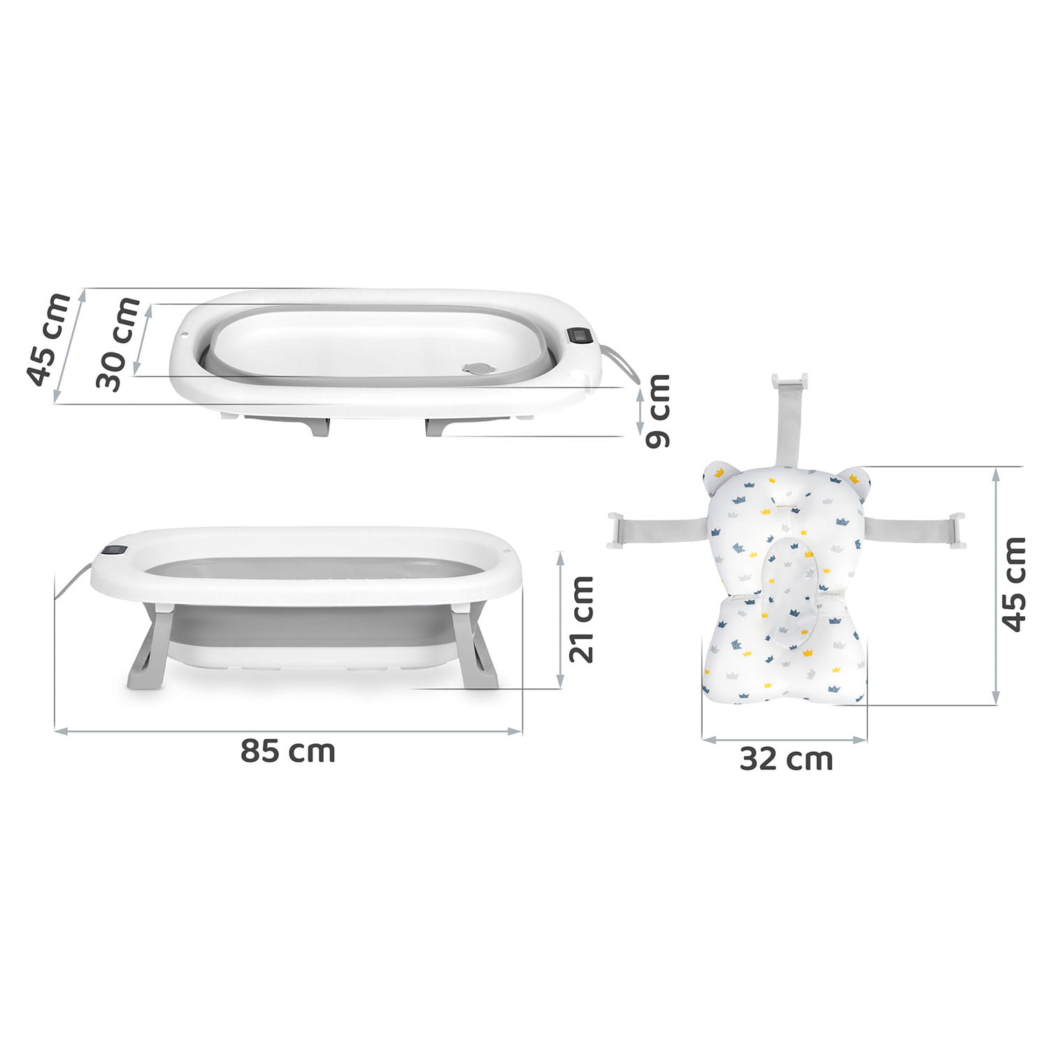 Wanienka składana dla dzieci, niemowląt z termometrem i wkładką Ricokids RK-287 biało-szara