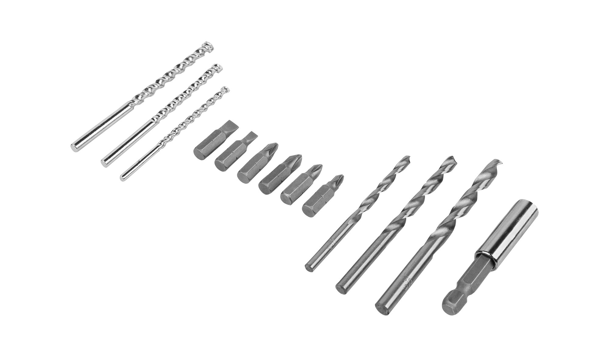 Ponadto, narzędzie posiada dwa tryby prędkości, które zagwarantują precyzję podczas pracy. Wraz z wiertarko-wkrętarką w zestawie znalazło się 13 wierteł, aby bezproblemowo dobrać wielkość oraz typ odpowiedni do obrabianego materiału. Zaletą elektronarzędzia jest szybkozaciskowy uchwyt wiertarski, dzięki któremu szybko i wygodnie wymienisz wiertła – bez użycia dodatkowych kluczyków.