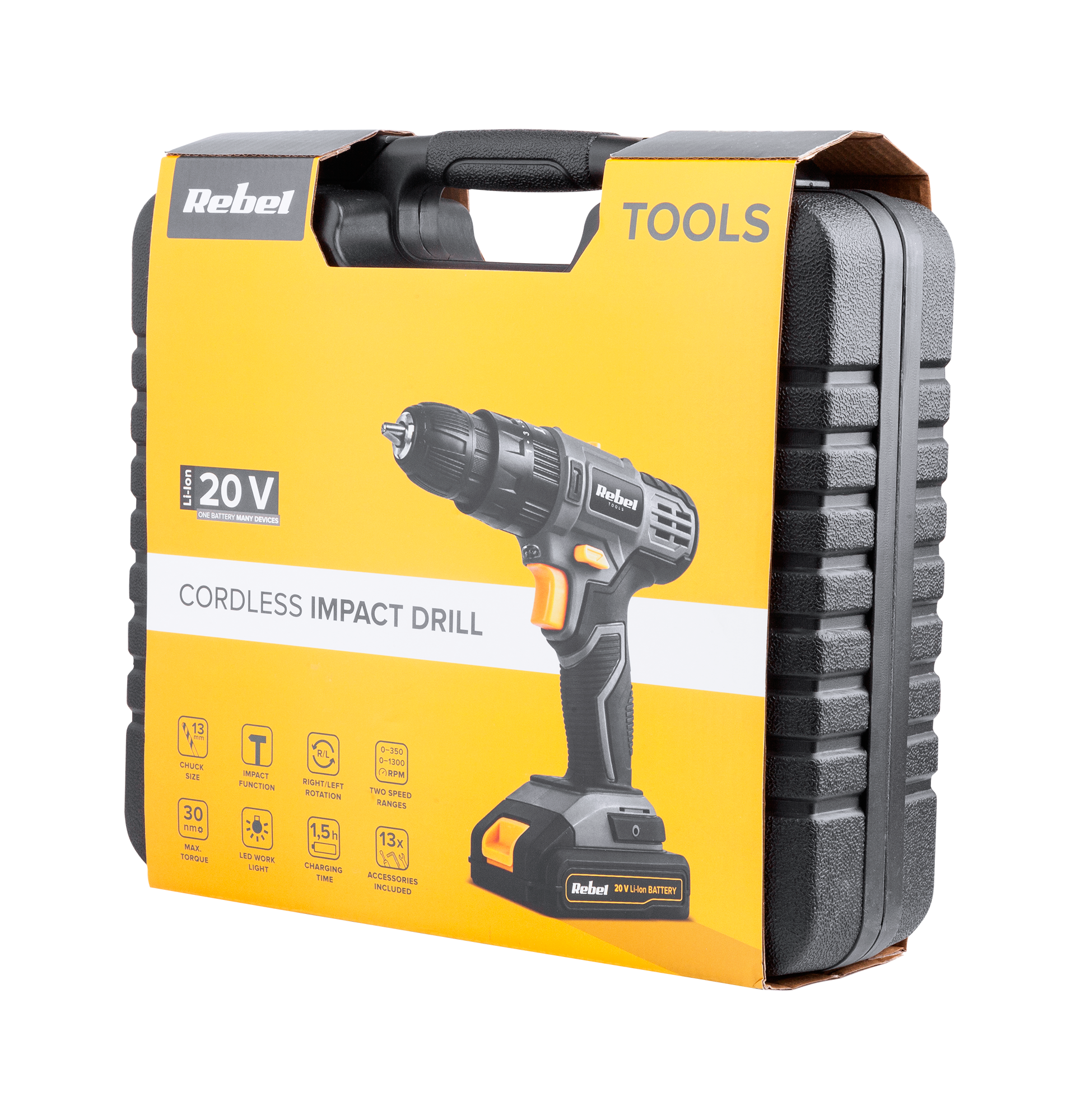 Lubisz robić w domu wszystko samodzielnie? Udarowa wiertarko-wkrętarka z serii Rebel Tools to elektronarzędzie, które obowiązkowo powinno znaleźć się na wyposażeniu Twojego domowego warsztatu. Na największą uwagę zasługuje oczywiście funkcja udaru, dzięki której urządzenie sprawdzi się nie tylko do wiercenia w drewnie czy metalu, ale także bez problemu poradzi sobie z betonem.