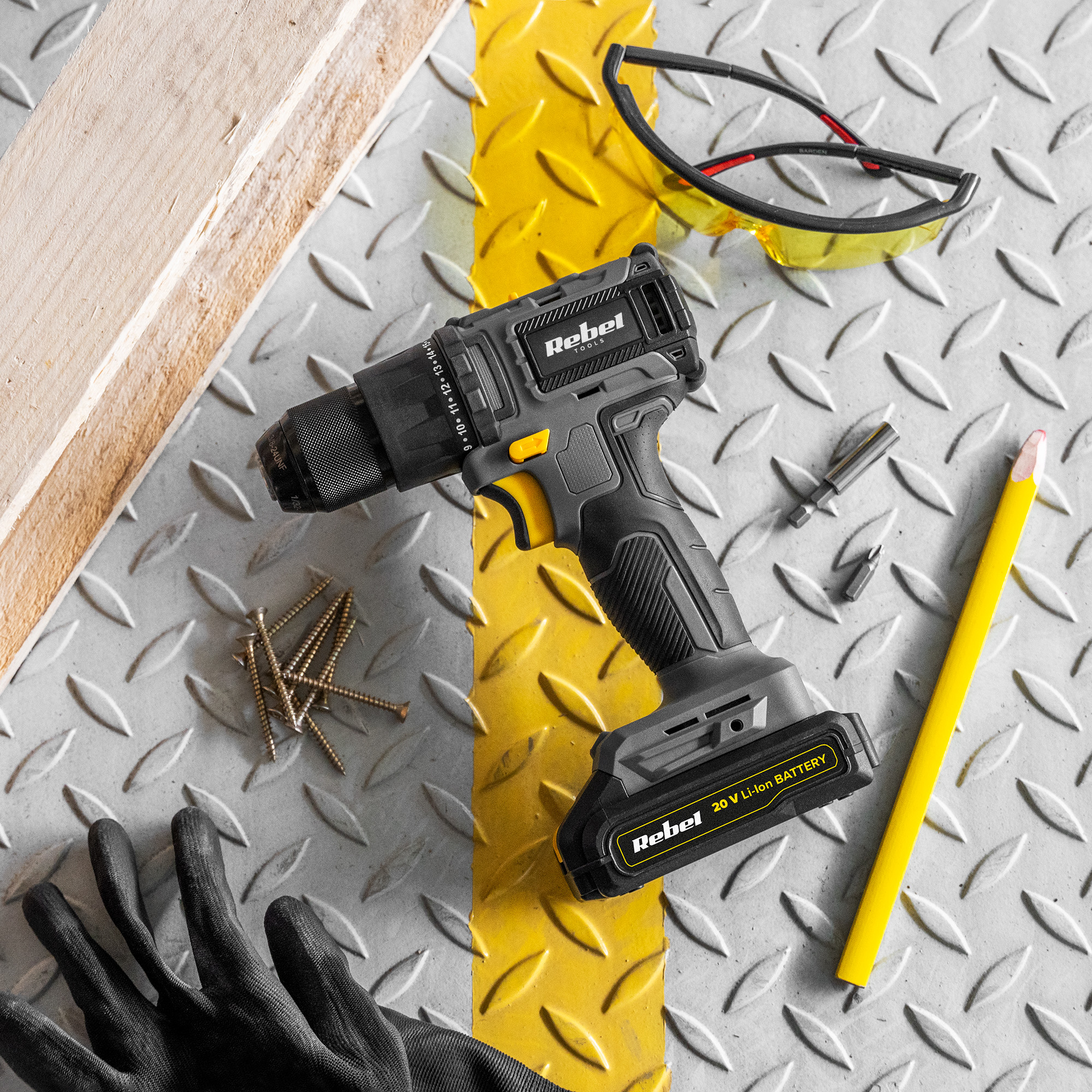 Wiertarko wkrętarka akumulatorowa Rebel 20V bezszczotkowa 2 Ah