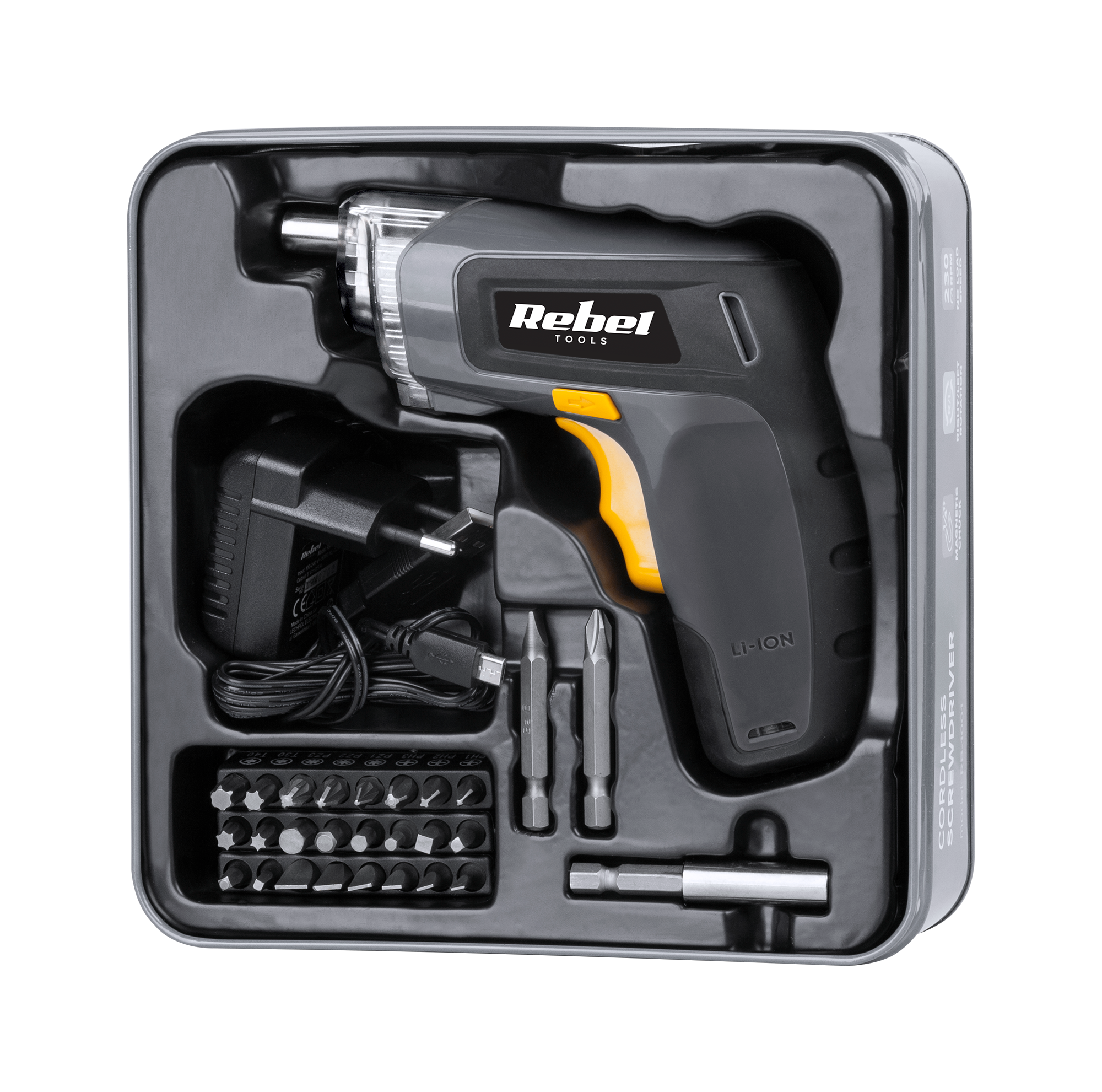 Wkrętarka akumulatorowa Rebel 27 bitów 3.6V 1.3 Ah