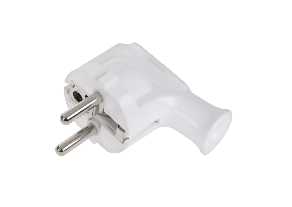 Wtyczka kątowa z uziemieniem unischuko biała WT-35