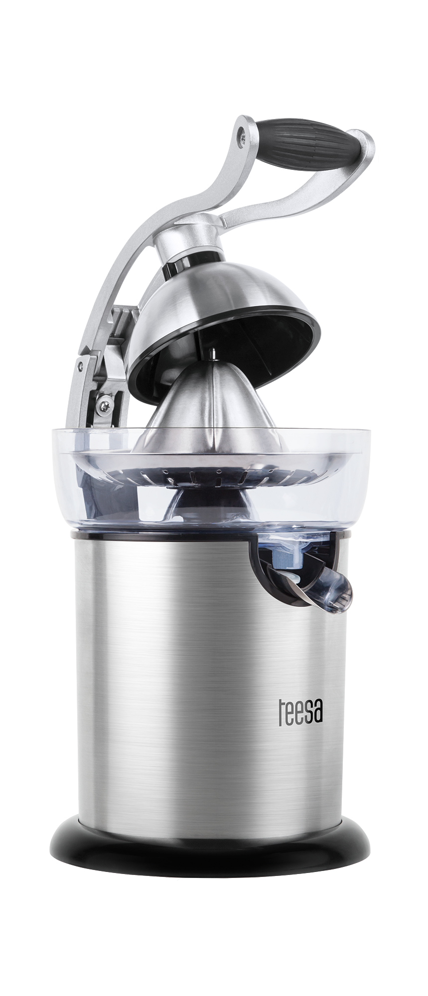 Wyciskarka cytrusowa Teesa posiada wiele przydatnych funkcji, takich jak automatyczne wyciskanie, ciągły przepływ soku oraz antypoślizgowe stopki, które zapewniają stabilność.