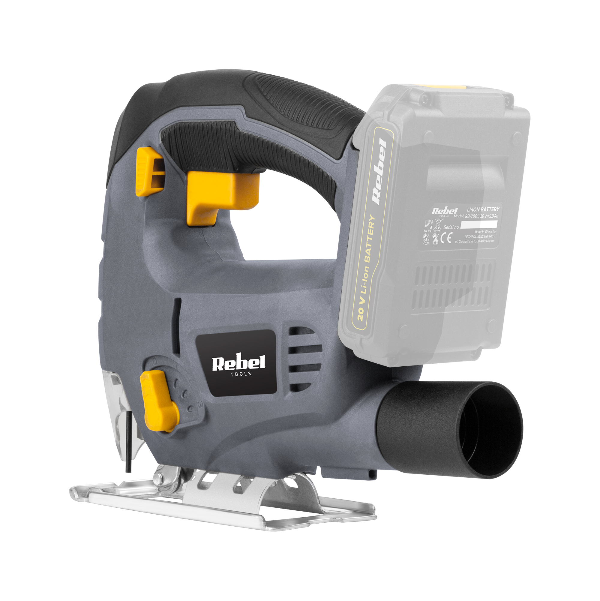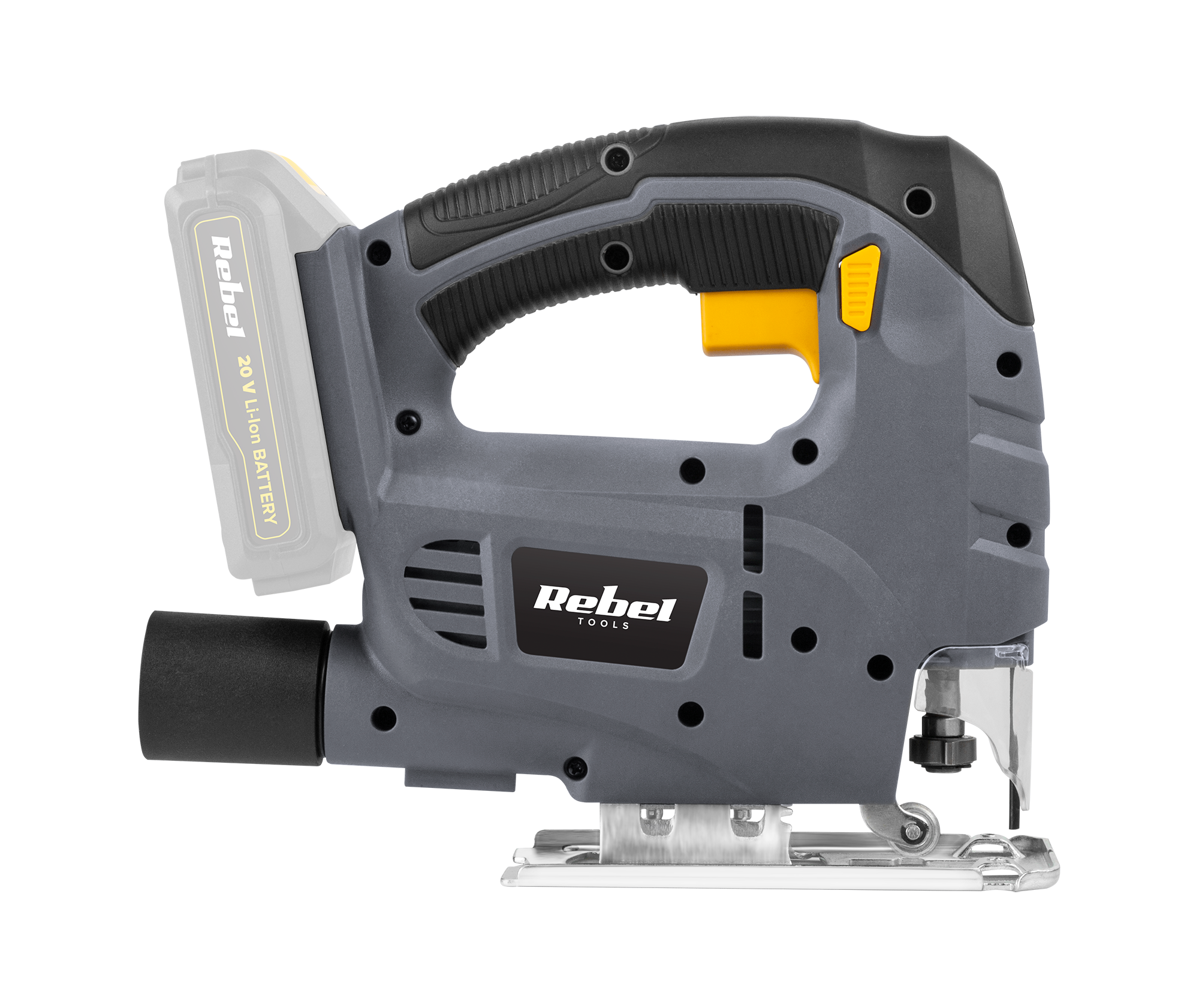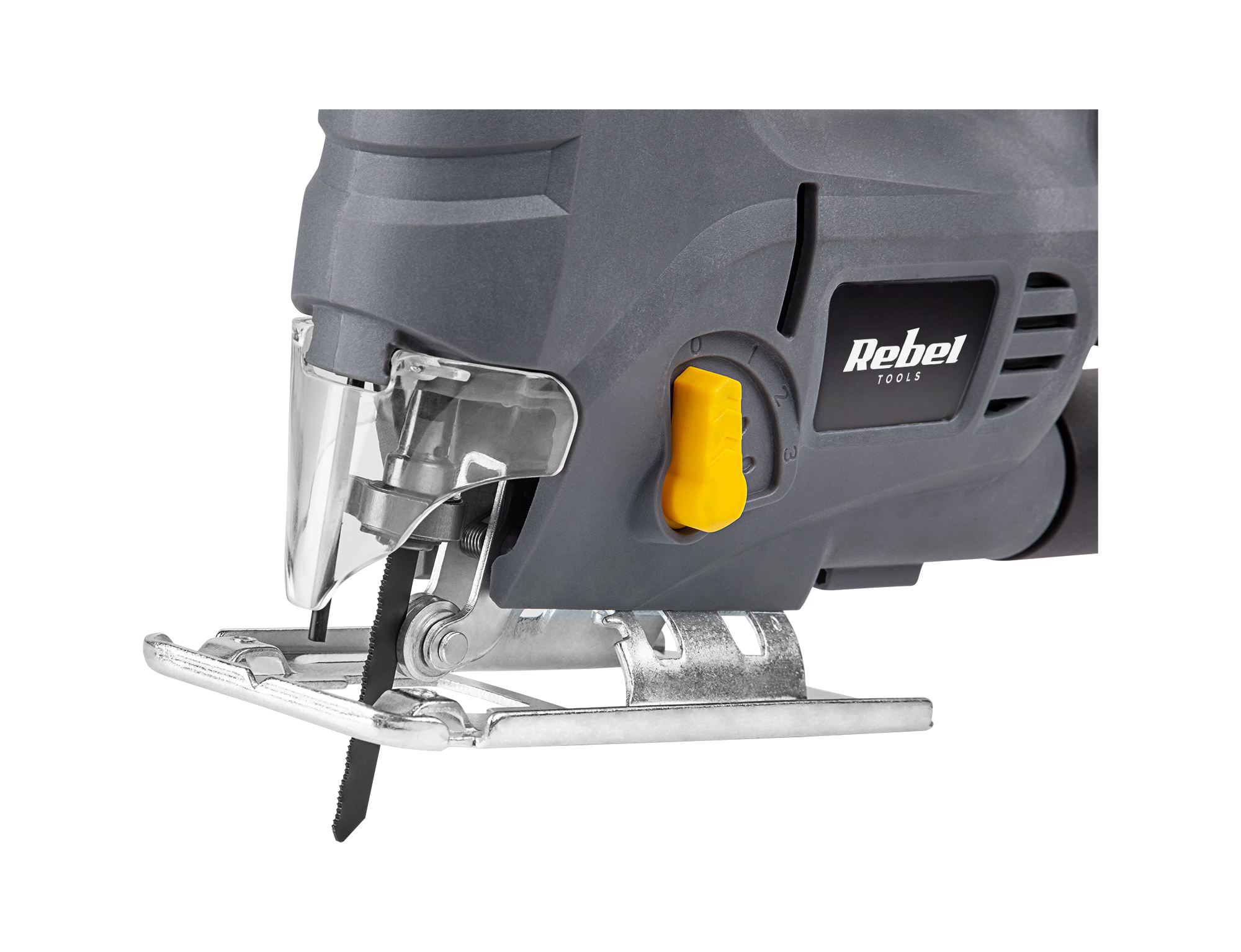 Jak przystało na mocne narzędzie warsztatowe, wyrzynarka Rebel Tools posiada trwałą metalową stopę co w połączeniu z mocną obudową i gumowaną rękojeścią, gwarantuje długą i ergonomiczną pracę przez wiele lat.