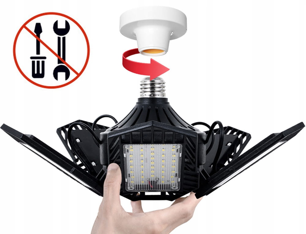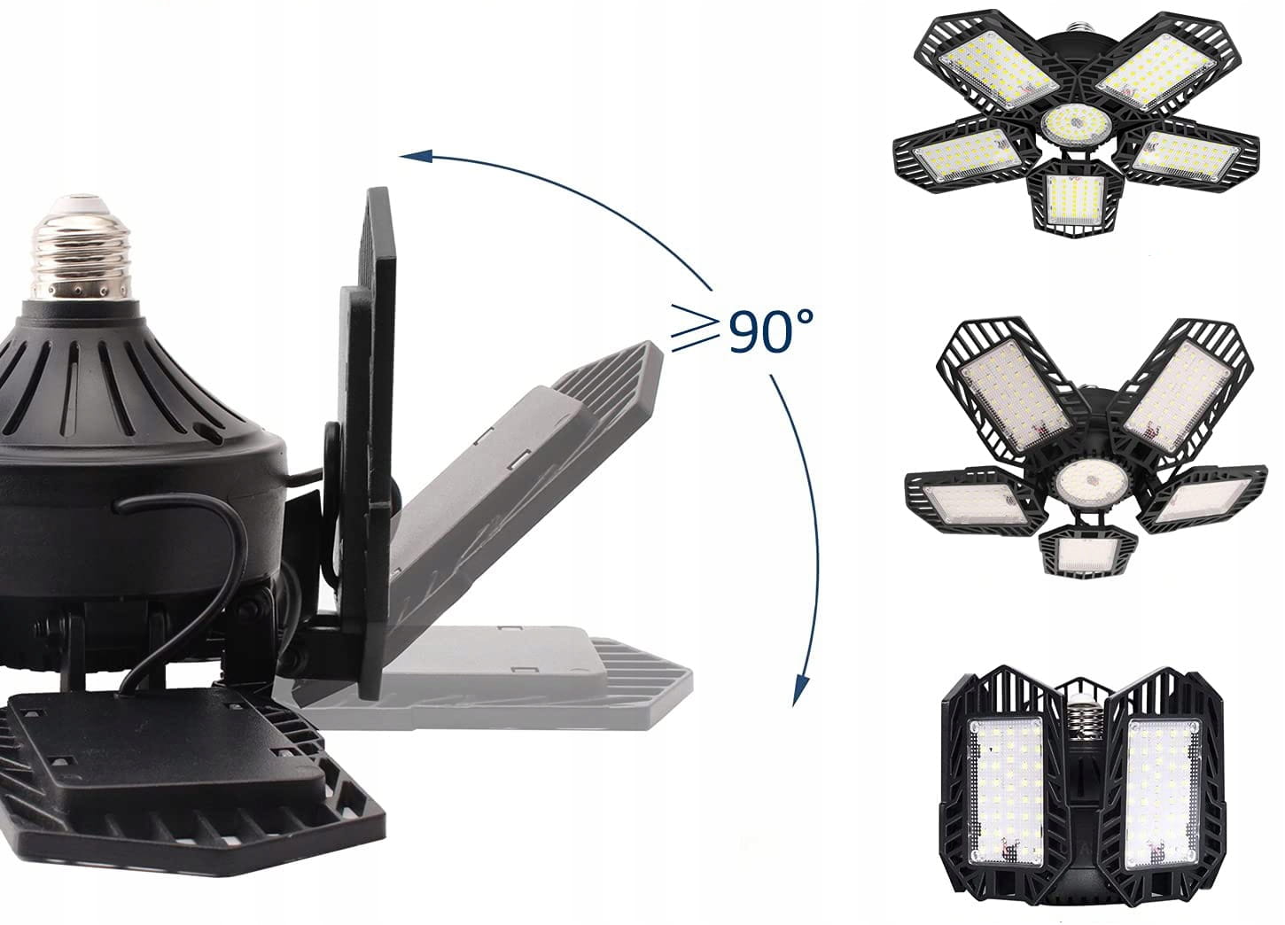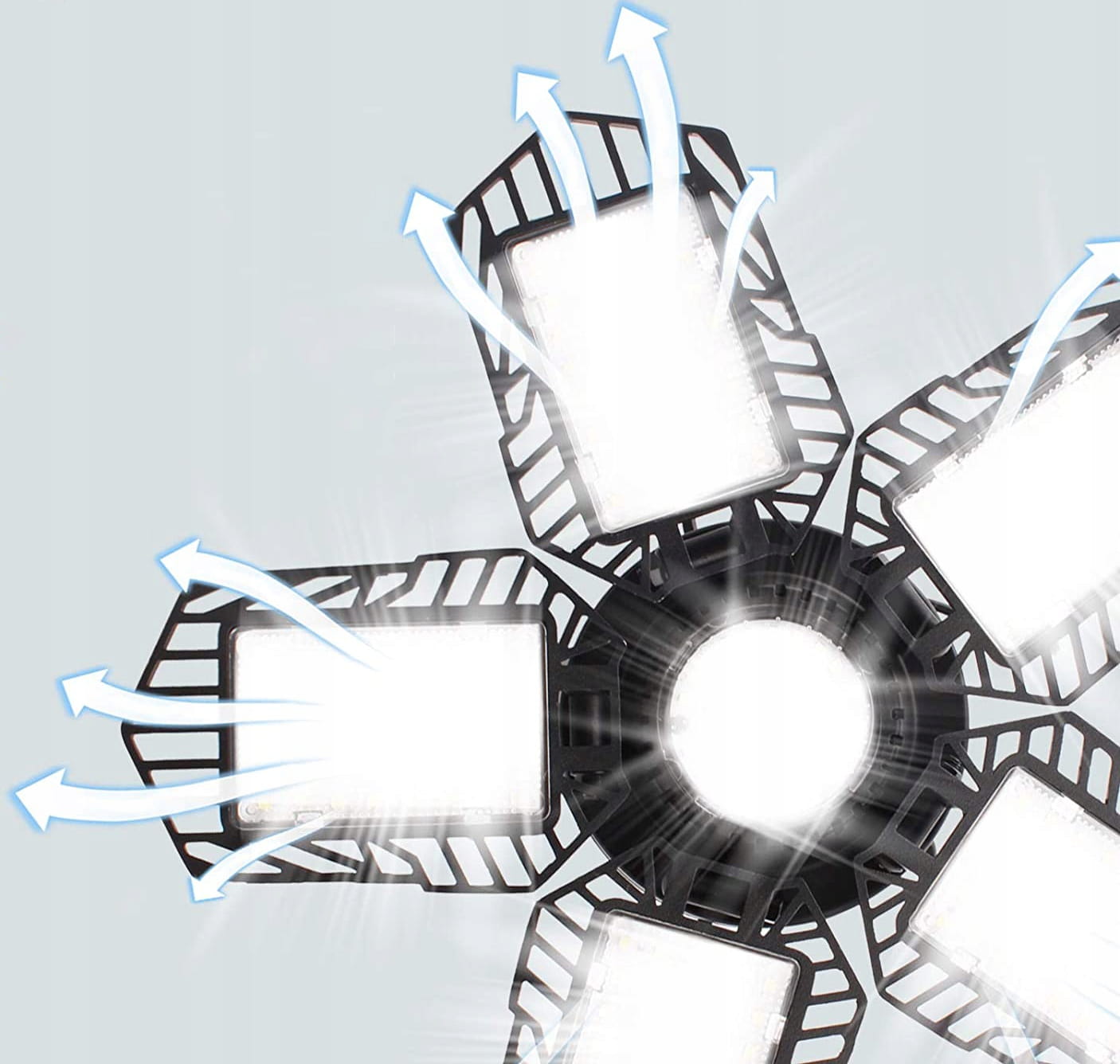 ODKSZTAŁCALNA LAMPA WARSZTATOWA LED Z 5 SKRZYDŁAMI I REGULACJĄ KĄTA ŚWIECENIA!
