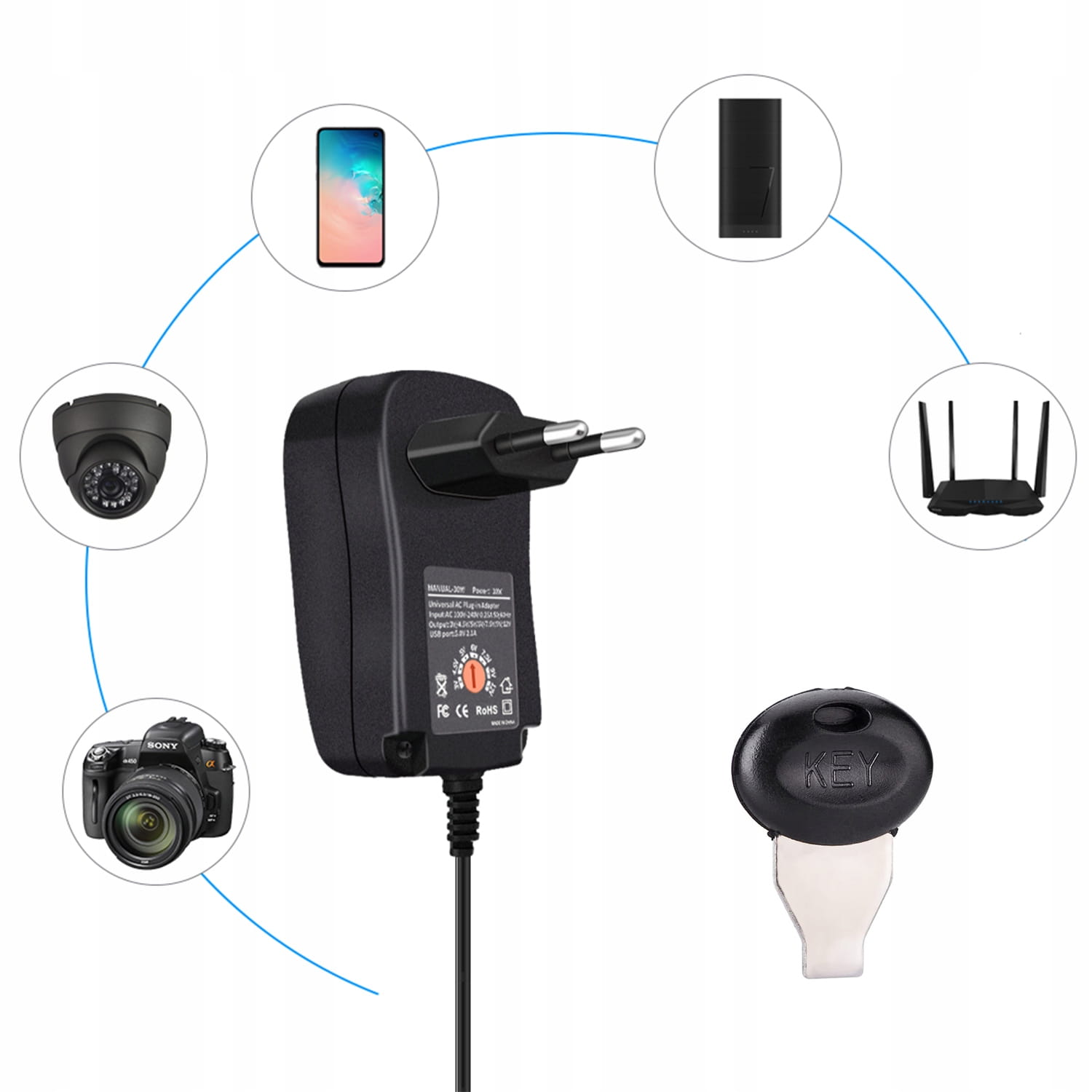 Kolejną zaletą uniwersalnego zasilacza jest możliwość zmiany napięcia za pomocą kluczyka. Dzięki temu użytkownik może dostosować zasilanie do konkretnych wymagań urządzenia, co jest szczególnie ważne w przypadku urządzeń, które wymagają stabilnego i dokładnego zasilania. Klucz umożliwia regulowanie napięcia w zakresie od 3V do 12V, co daje dużą swobodę użytkownikowi.