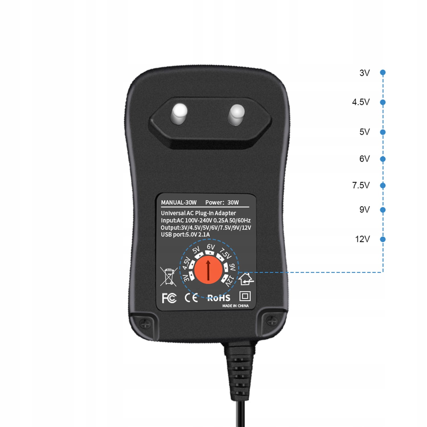 - Moc wyjściowa: 3V, 4,5V, 5V, 6V, 7,5V, 9V, 12V