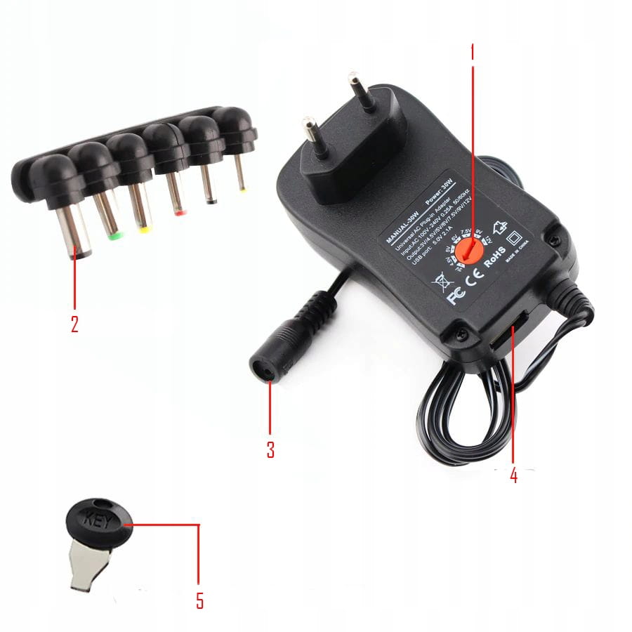 Kolejną zaletą uniwersalnego zasilacza jest możliwość zmiany napięcia za pomocą kluczyka. Dzięki temu użytkownik może dostosować zasilanie do konkretnych wymagań urządzenia, co jest szczególnie ważne w przypadku urządzeń, które wymagają stabilnego i dokładnego zasilania. Klucz umożliwia regulowanie napięcia w zakresie od 3V do 12V, co daje dużą swobodę użytkownikowi.