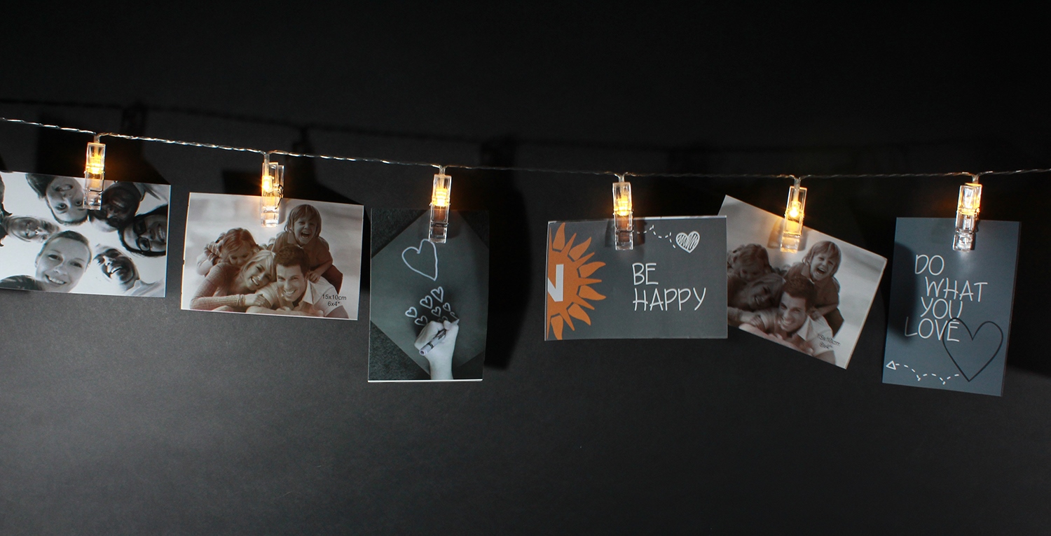 - Uniwersalne – sprawdzą się nie tylko jako lampki na Święta, będą również świetnym pomysłem na dekorację stołów, półek, kwiatów oraz jako klimatyczne tło do zdjęć. Do klamerek można przypiąć zdjęcia lub wakacyjne czy rodzinne pamiątki. Prezentują się pięknie w każdym miejscu, gdzie je umieścimy, dodając pomieszczeniu nastroju.
