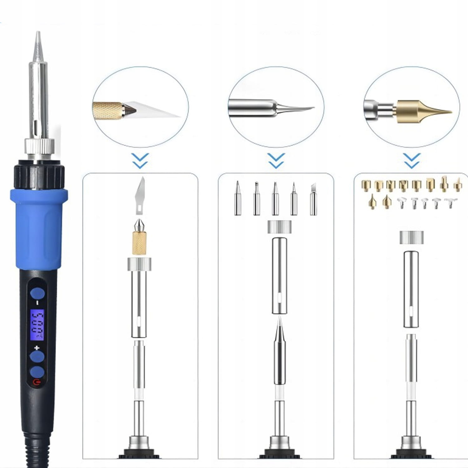 Wiele elementów w zestawie na które składa się cyna, wymienne groty, pęseta i wiele innych.