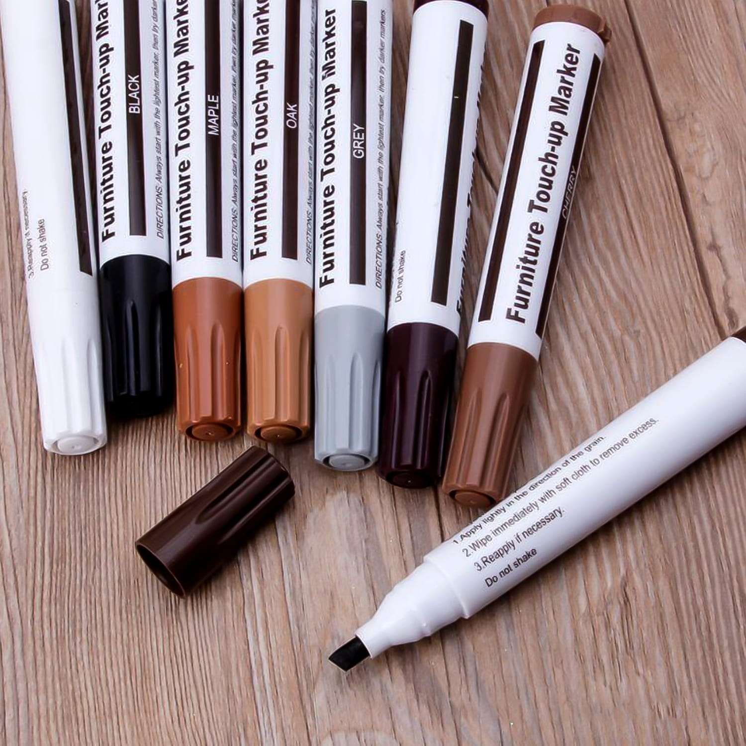 - markery stosuje się w miejscach narażonych na wycieranie – narożnikach mebli, nogach stołów i krzeseł. Pigment zawarty w markerze pozwala zniwelować widoczność odprysków.