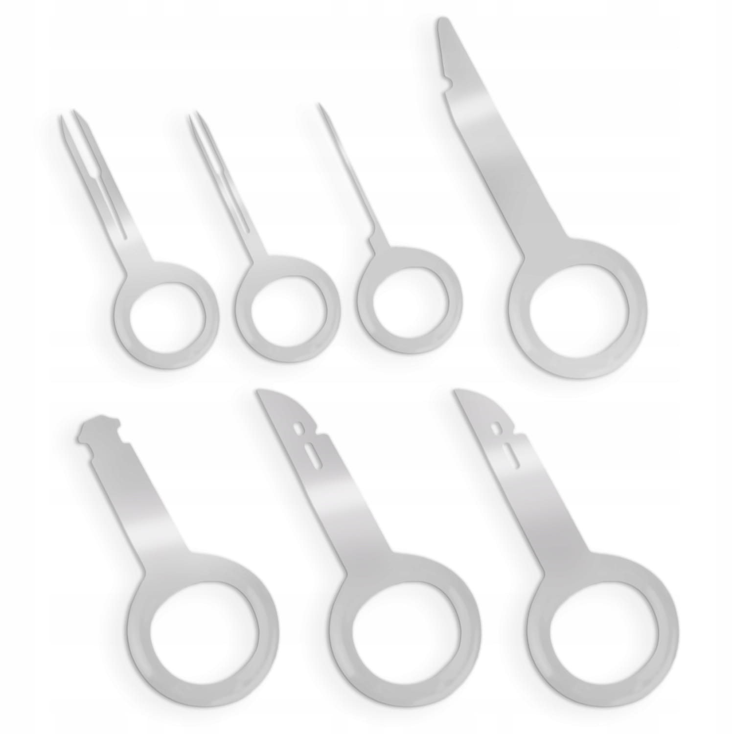 Uniwersalne wyjmaki i klucze do pinów pozwalają sprawnie zdemontować wszelkiego rodzaju radia, ekrany, nawigacje itp, bez uszkadzania tapicerki.