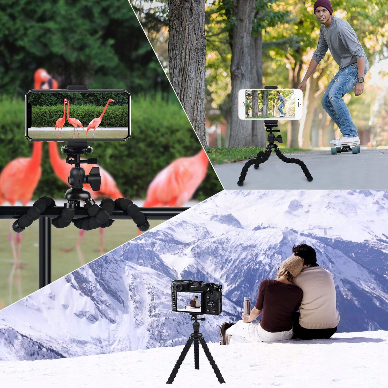 Statyw z wyginanymi nogami jest szczególnie przydatny w czasie podróży, na wycieczkach lub w trakcie aktywnego spędzania czasu na świeżym powietrzu.