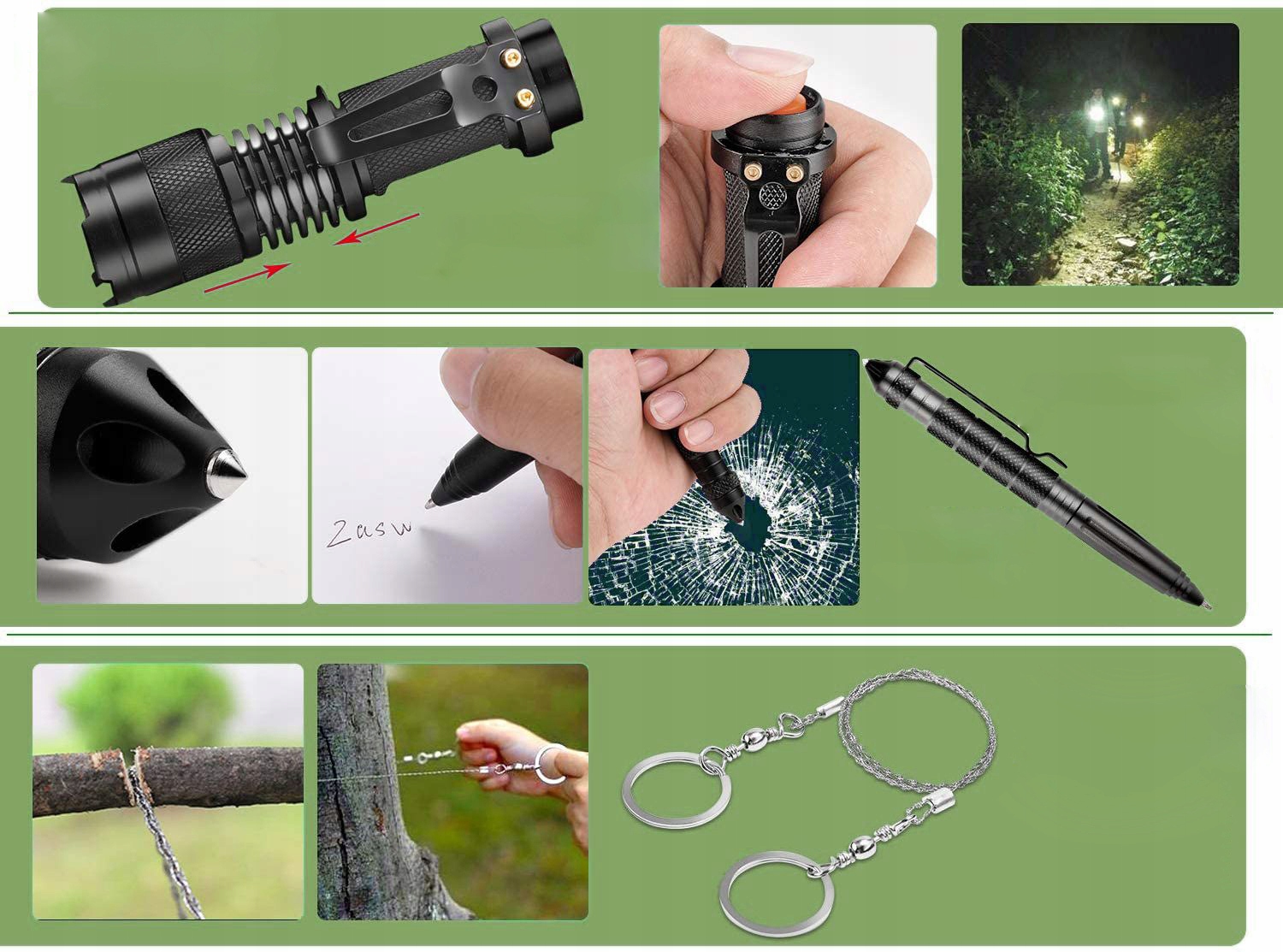 Zestaw narzędzi i akcesoriów survivalowych to niezbędnik każdego, kto poważnie myśli o swoim bezpieczeństwie i wygodzie podczas podróży, wycieczek, biwaków oraz innej aktywności na łonie przyrody. Szeroki wachlarz narzędzi i akcesoriów sprawdzi się jednak nie tylko podczas wypadów do lasu ale również w codziennych sytuacjach. Mając go przy sobie, możesz być pewny, że nie zaskoczy cię żadna sytuacja.