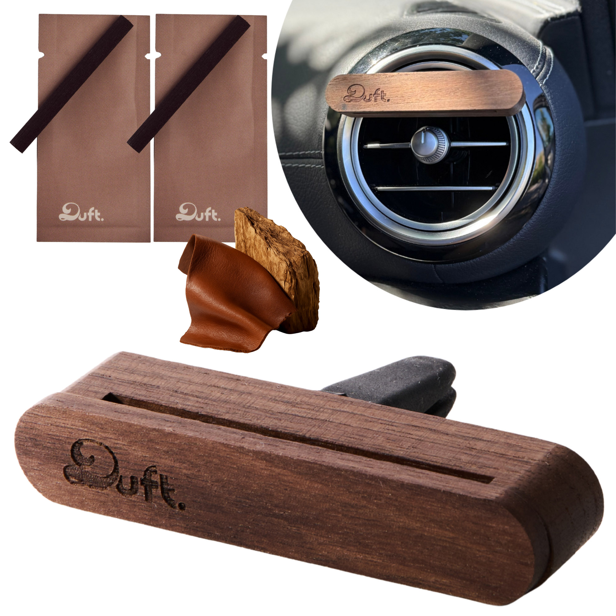 Zapach do samochodu DUFT - drewniany dyfuzor na kratkę +2 wkłady