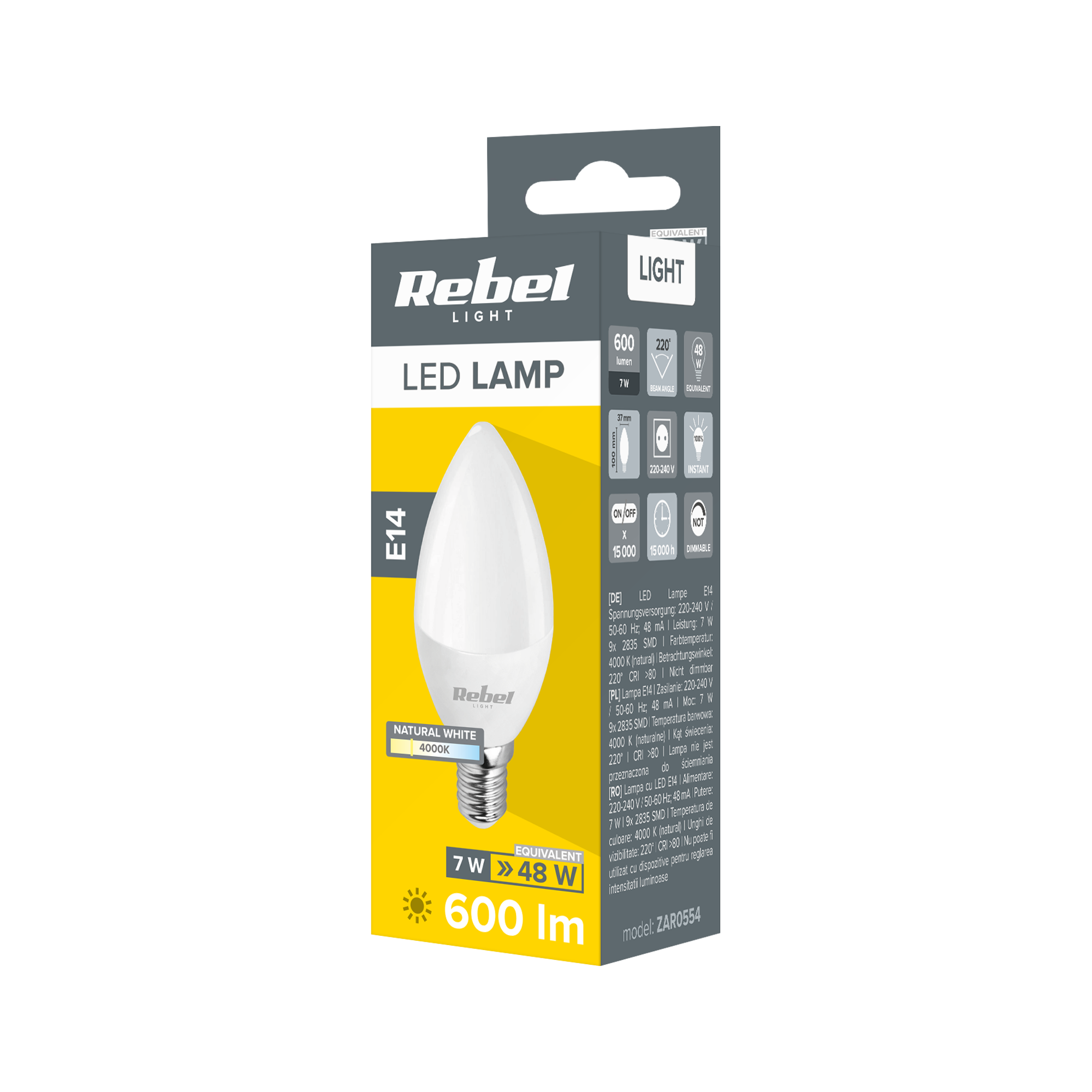 | Nazwa marketingowa | Lampa Led Rebel świeca 7W, E14,4000K, 230V |