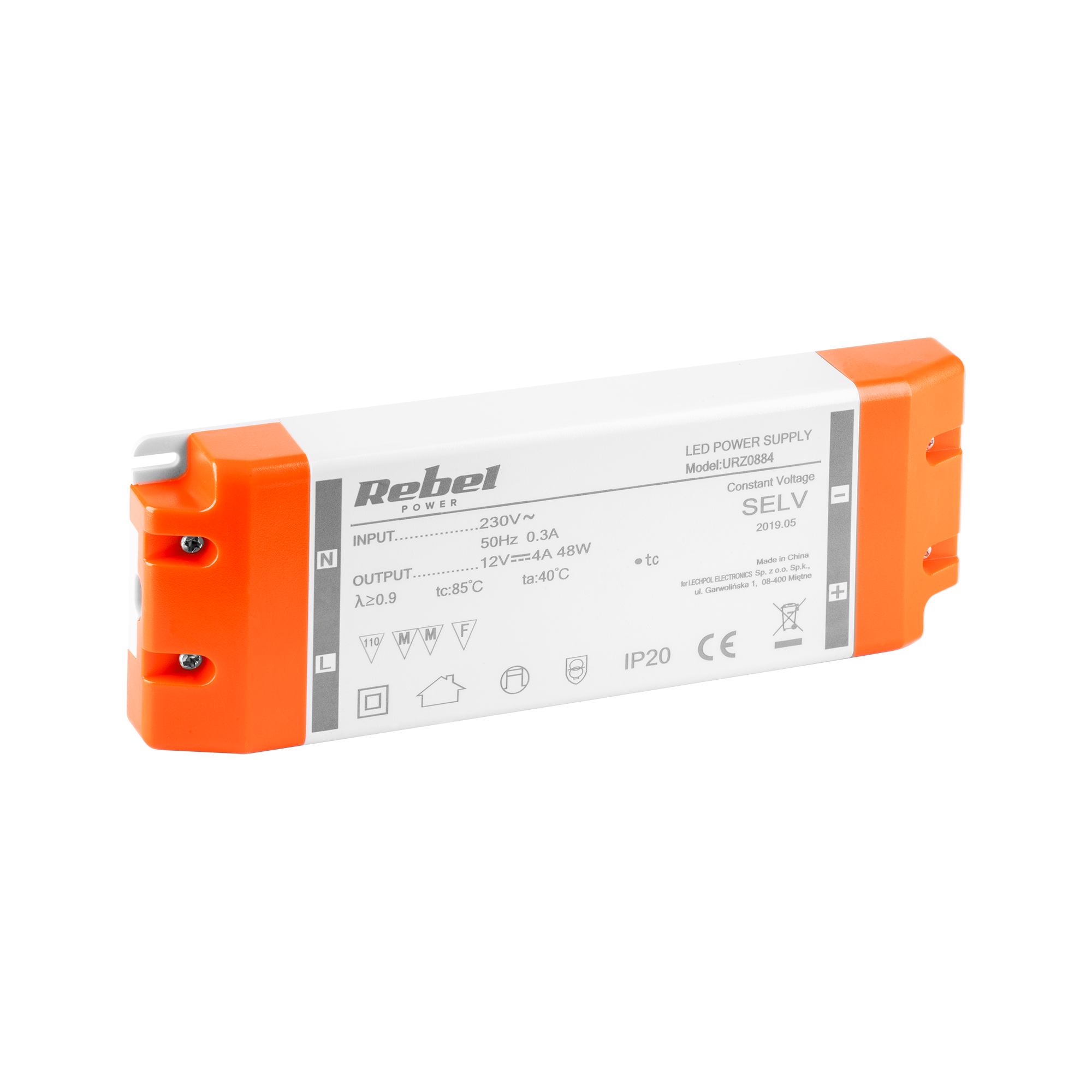 | Nazwa marketingowa | Zasilacz REBEL do sznurów diodowych LED 12V 4A (YSL60-1204000) 48Watt max. |