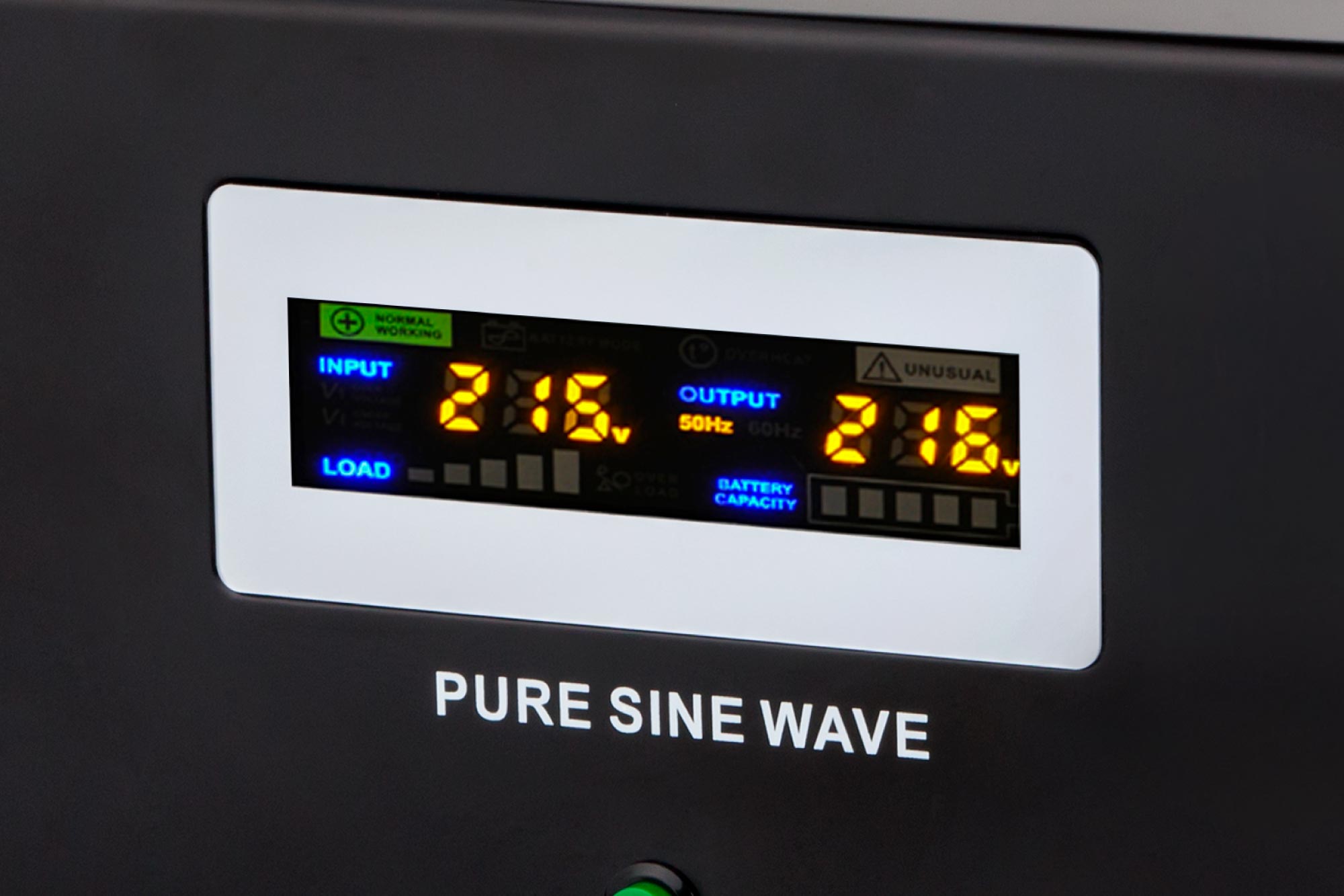 Awaryjne zasilacze KEMOT PROSinus wyposażone są w przejrzysty wyświetlacz LED, który wskaże aktualny status pracy urządzenia. Na wyświetlaczu skontrolujesz m.in. poziom napięcia wejściowego, wyjściowego i częstotliwości. Co więcej szybko sprawdzisz też poziom obciążenia i poziom naładowania baterii