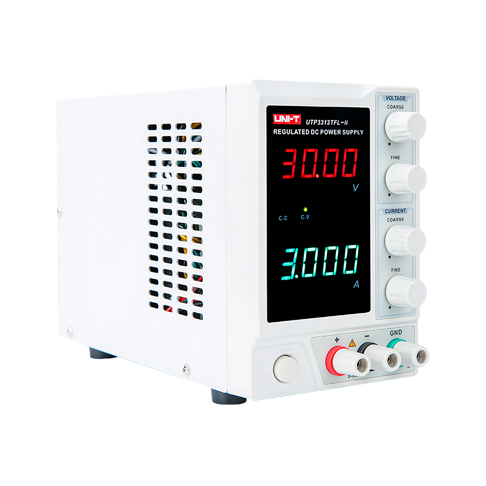 UTP3313TFL-II oferuje regulowane napięcie wyjściowe od 0 do 30 V z doskonałą stabilizacją wynoszącą ≤0,01%+3 mV, co gwarantuje wyjątkową dokładność podczas pracy z delikatnymi układami elektronicznymi. Natężenie prądu wyjściowego można regulować w zakresie od 0 do 3 A, z wysoką precyzją i stabilizacją na poziomie ≤0,1%+5 mA. Zasilacz zapewnia moc wyjściową do 90 W, co pozwala na zasilanie różnych typów urządzeń.
